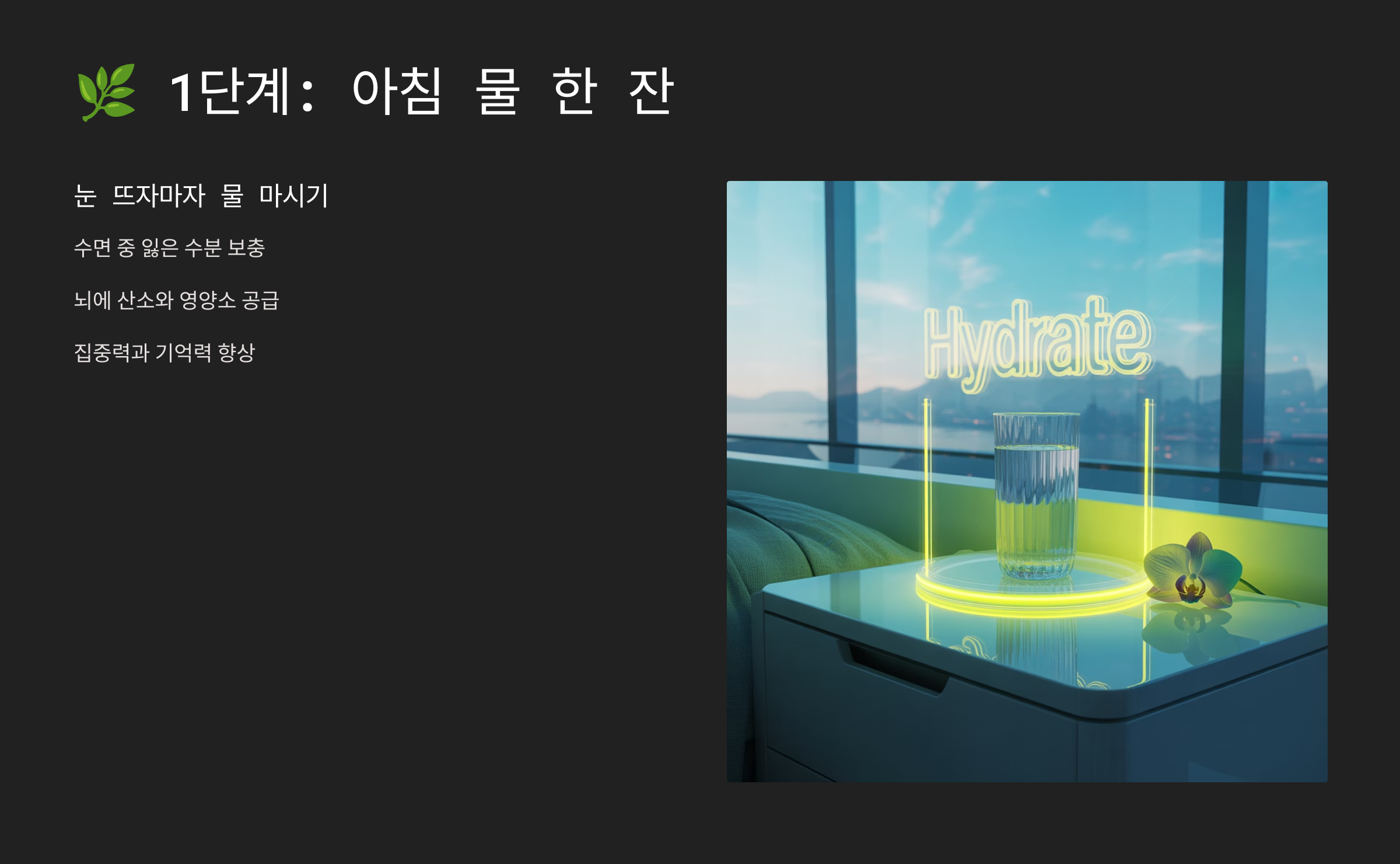 ✔️ 1단계: 눈 뜨자마자 물 마시기