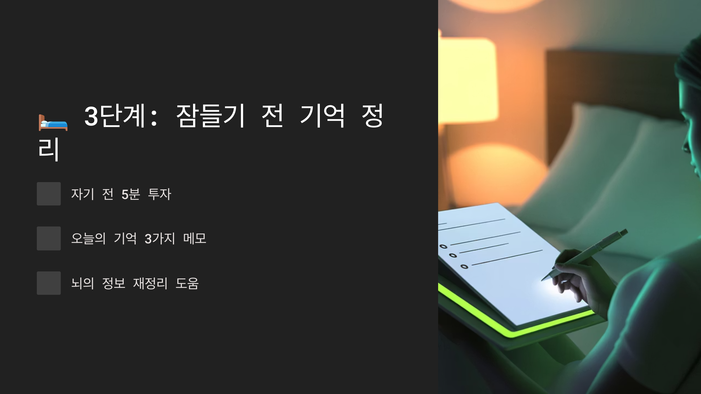 🛏️ 3. 잠들기 전 기억 정리 루틴