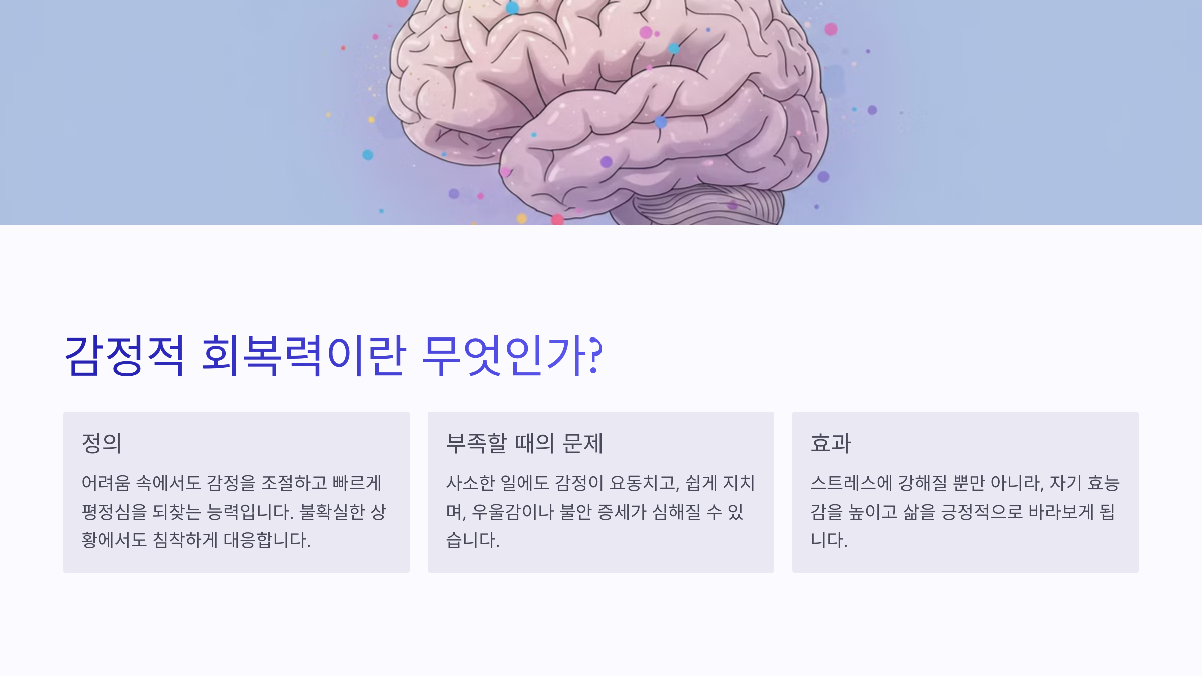 ✔️ 성취한 후에는 자신을 칭찬하세요. "나는 할 수 있다"는 확신이 들수록 감정적 회복력이 강해집니다.