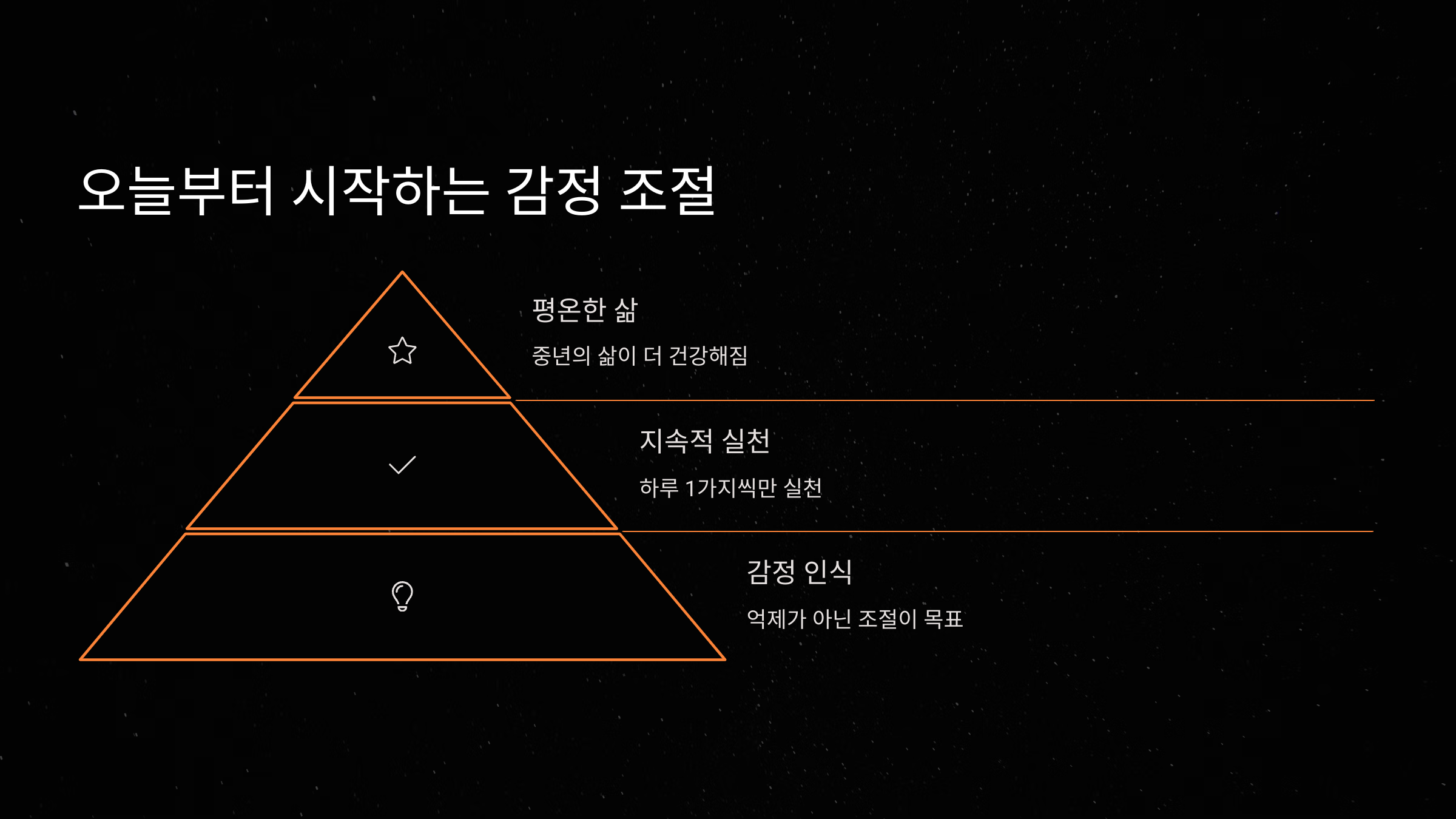 감정은 억제하는 것이 아니라 조절하는 것입니다. 지금부터라도 작은 실천을 시작해 보세요. 중년의 삶이 더 평온하고 건강해질 수 있습니다.