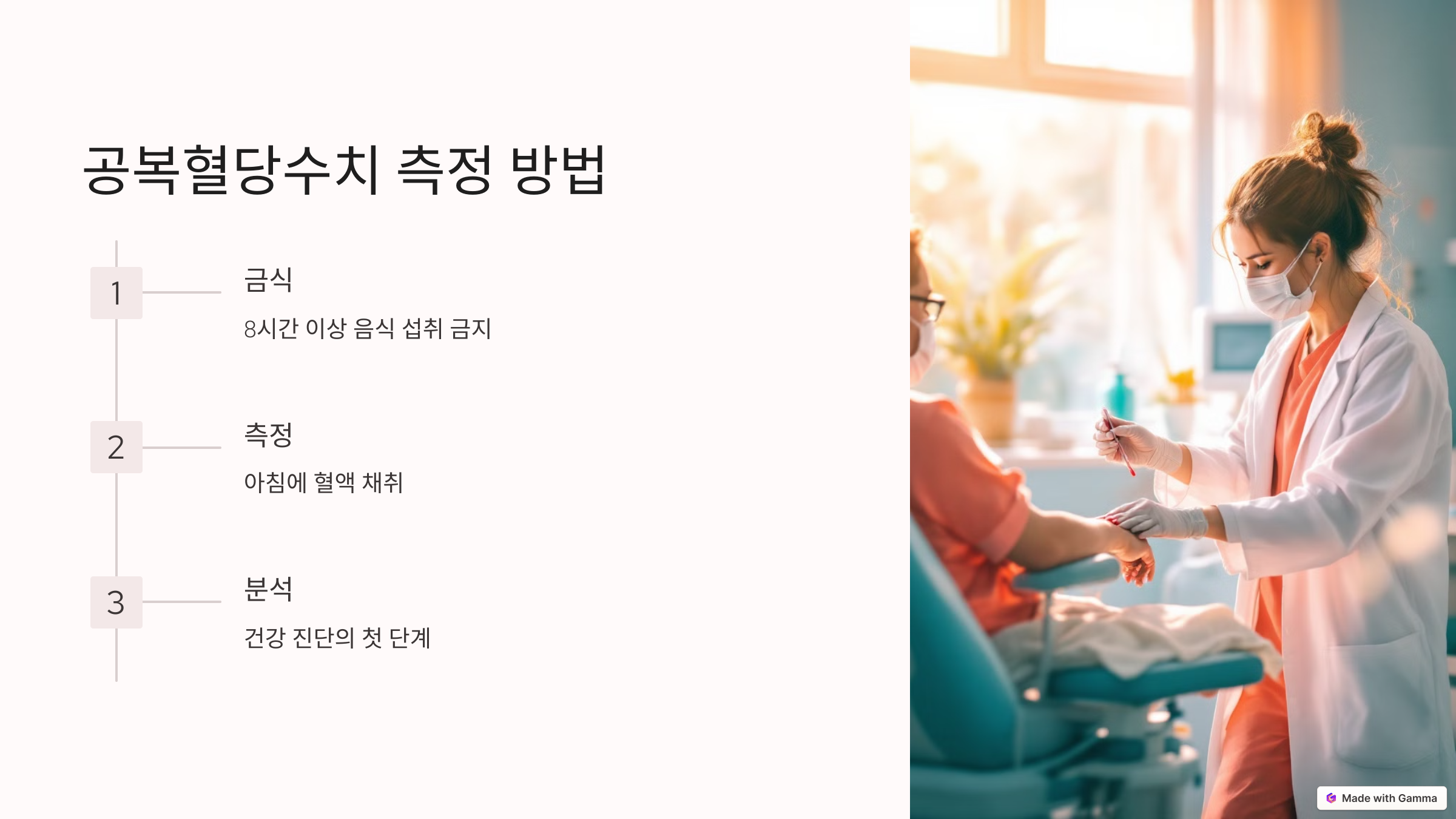 공복혈당수치를 측정하는 방법은 간단합니다. 아침에 일어난 후 8시간 이상 금식한 상태에서 혈액을 채취하여 측정합니다. 이 과정은 마치 우리의 몸이 얼마나 잘 작동하는지를 점검하는 건강 진단과 같습니다. 정확한 측정을 위해서는 사전에 준비가 필요합니다.