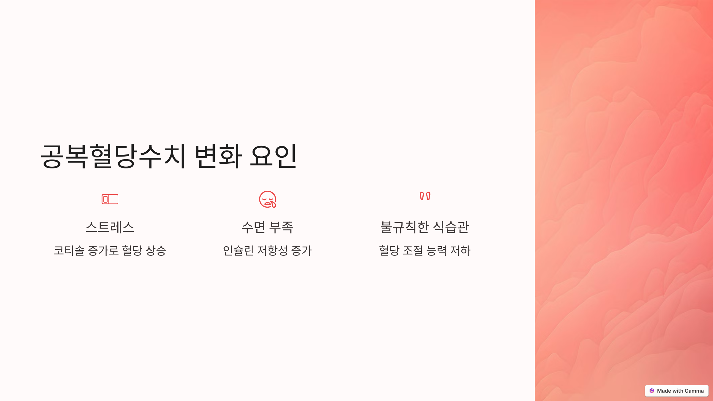 공복혈당수치는 여러 요인에 의해 영향을 받을 수 있습니다. 스트레스, 수면 부족, 불규칙한 식습관 등이 그 예입니다. 이러한 변화는 마치 바람에 흔들리는 나무처럼 우리의 건강에 큰 영향을 미칠 수 있습니다. 따라서, 공복혈당수치를 주의 깊게 살펴보는 것이 중요합니다.