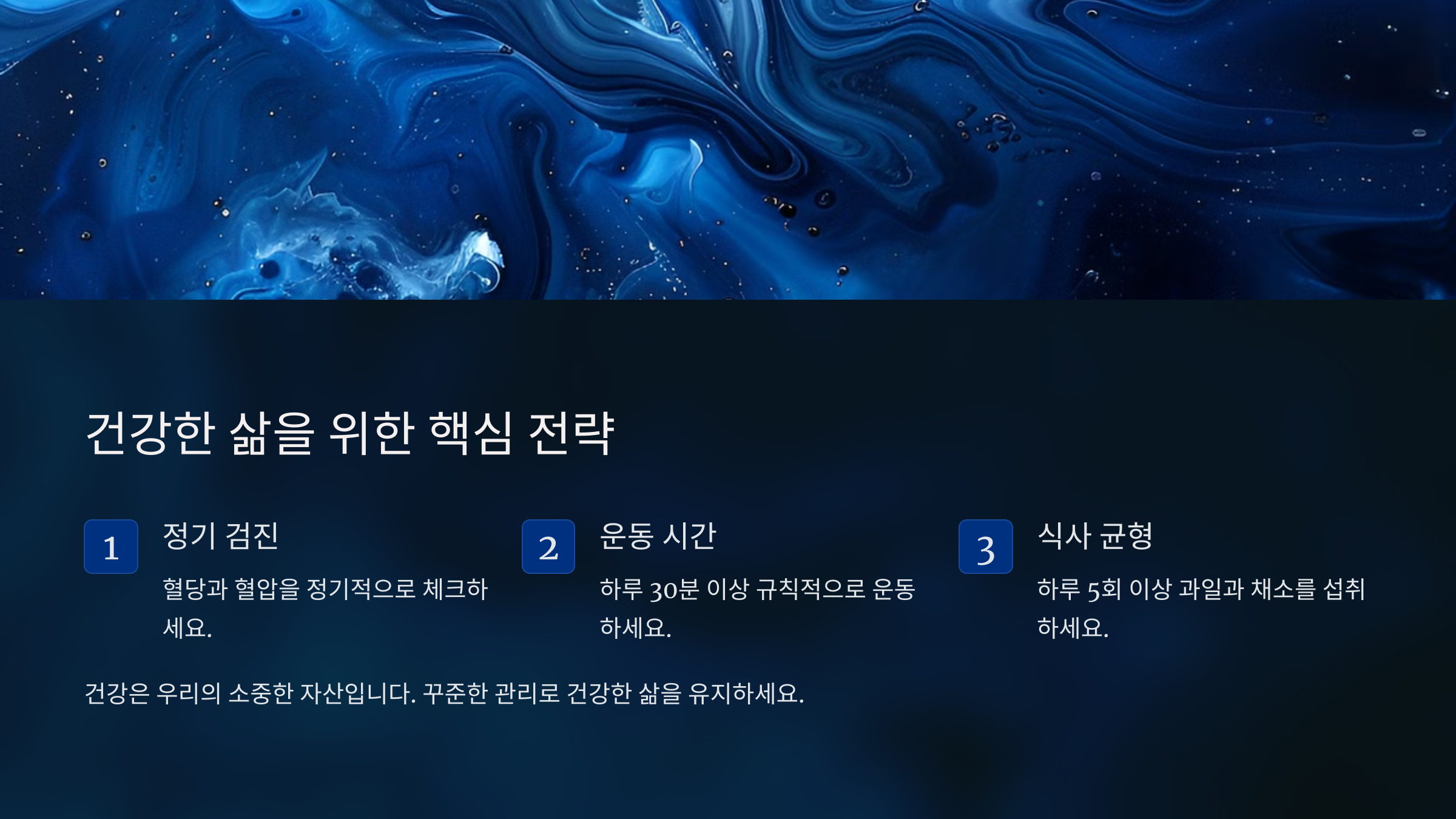 공복 혈당과 혈압은 우리의 건강을 지키는 두 기둥입니다. 이 두 가지를 잘 관리하면, 건강한 삶을 누릴 수 있습니다. 건강한 식습관, 규칙적인 운동, 스트레스 관리 등은 이 두 가지를 조절하는 데 큰 도움이 됩니다. 건강은 소중한 자산입니다. 이를 지키기 위해서는 꾸준한 노력이 필요합니다. 공복 혈당과 혈압을 잘 관리하여, 더 나은 삶을 만들어 나가길 바랍니다. 건강한 삶은 선택이 아니라 필수입니다.