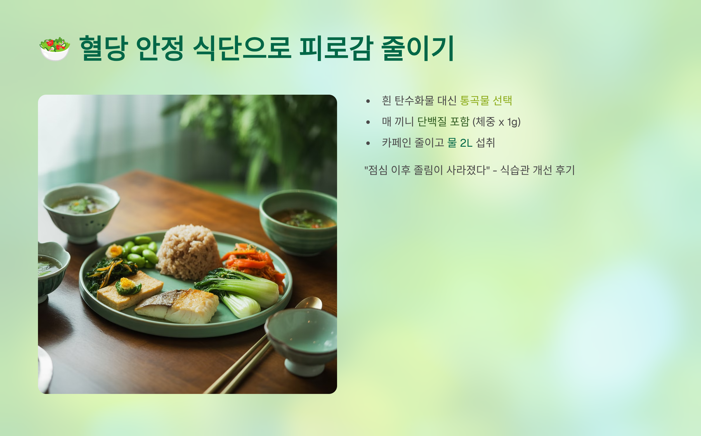 🥗 2. 혈당 안정 식단으로 피로감 줄이기