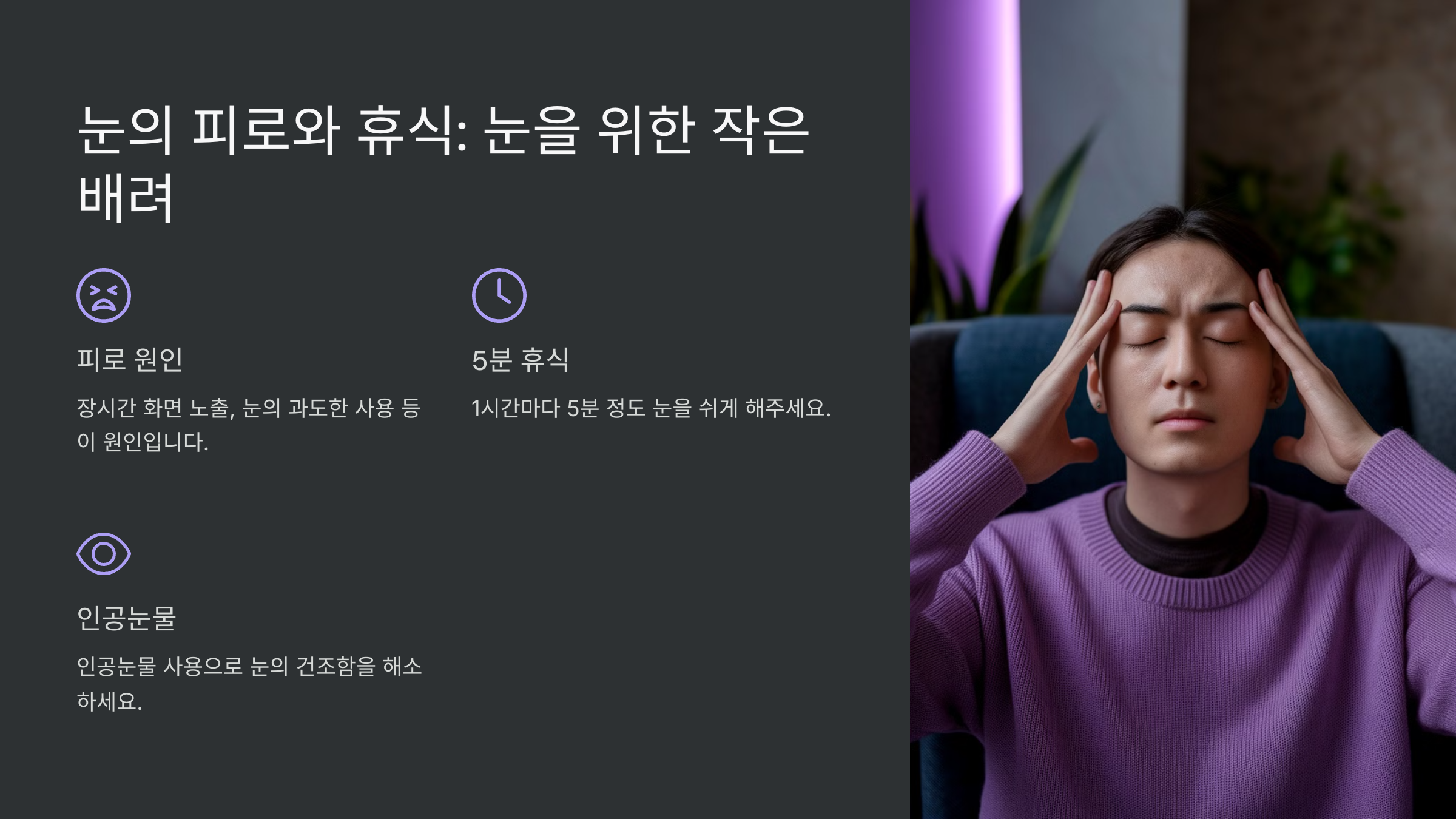 [눈의 피로와 휴식: 눈을 위한 작은 배려]