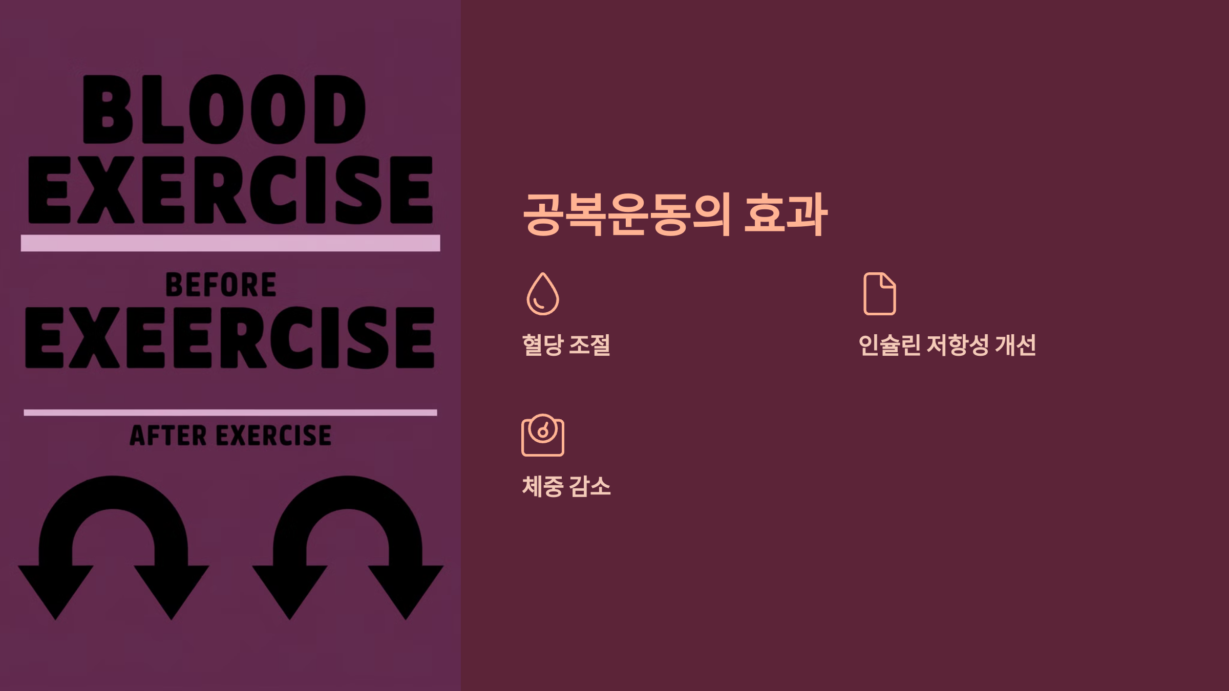 공복운동은 체내의 지방을 에너지원으로 사용하게 하여 혈당을 안정적으로 유지하는 데 도움을 줍니다.