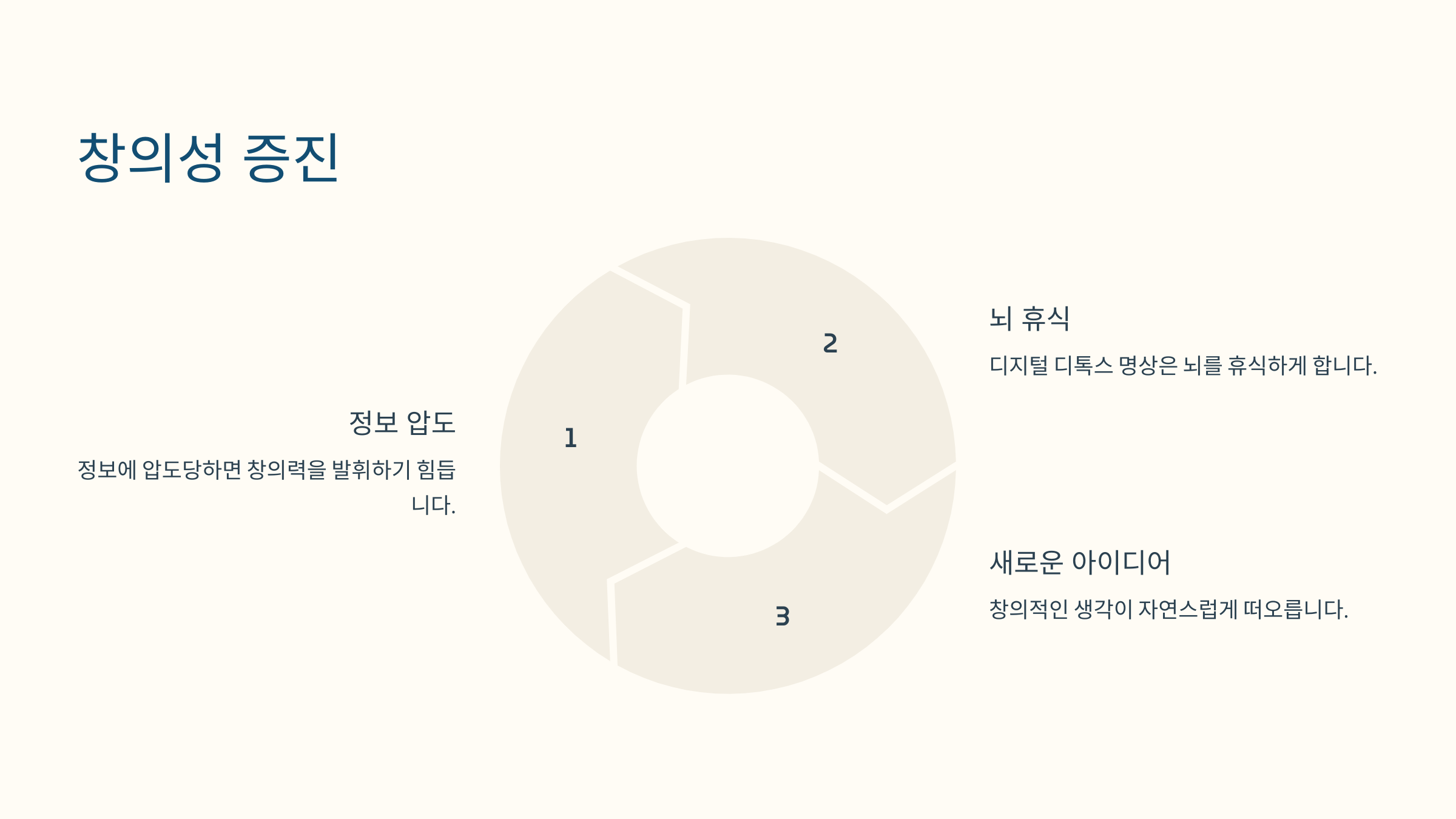 정보에 압도당하다 보면 우리는 종종 창의력을 발휘하기 힘들어집니다. 디지털 디톡스 명상은 뇌를 휴식하게 하고, 새로운 아이디어가 떠오르도록 돕습니다. 명상 중에는 의식의 흐름을 따라가며, 창의적인 생각이 자연스럽게 떠오르게 됩니다. 이는 마치 흐르는 물이 바위를 부드럽게 깎아내리는 과정과 같습니다. 그러므로, 정기적으로 명상을 실천하는 것은 창의력을 키우는 데 큰 도움이 됩니다.