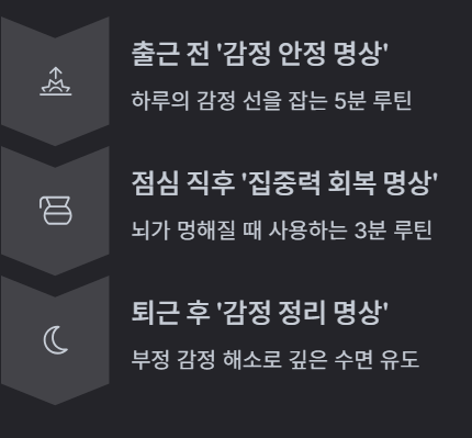 핵심 키워드: 직장인 명상, 감정 회복, 스트레스 완화, 집중력 향상, 뇌 리셋