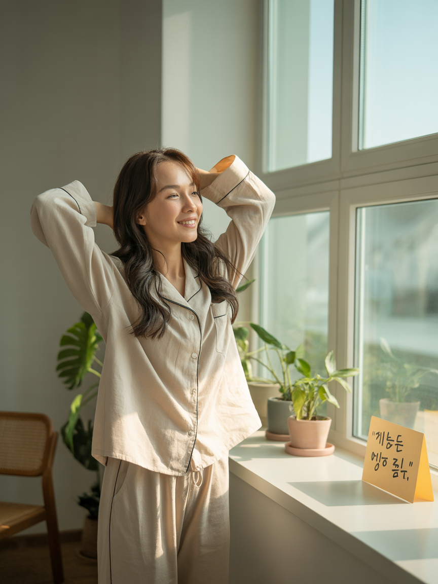알람이 울리면 바로 일어나기보다 **눈을 감은 채로 ‘오늘 할 일 1가지’를 떠올려보세요**. 이 작은 예열만으로도 뇌는 "움직일 준비"를 시작합니다.