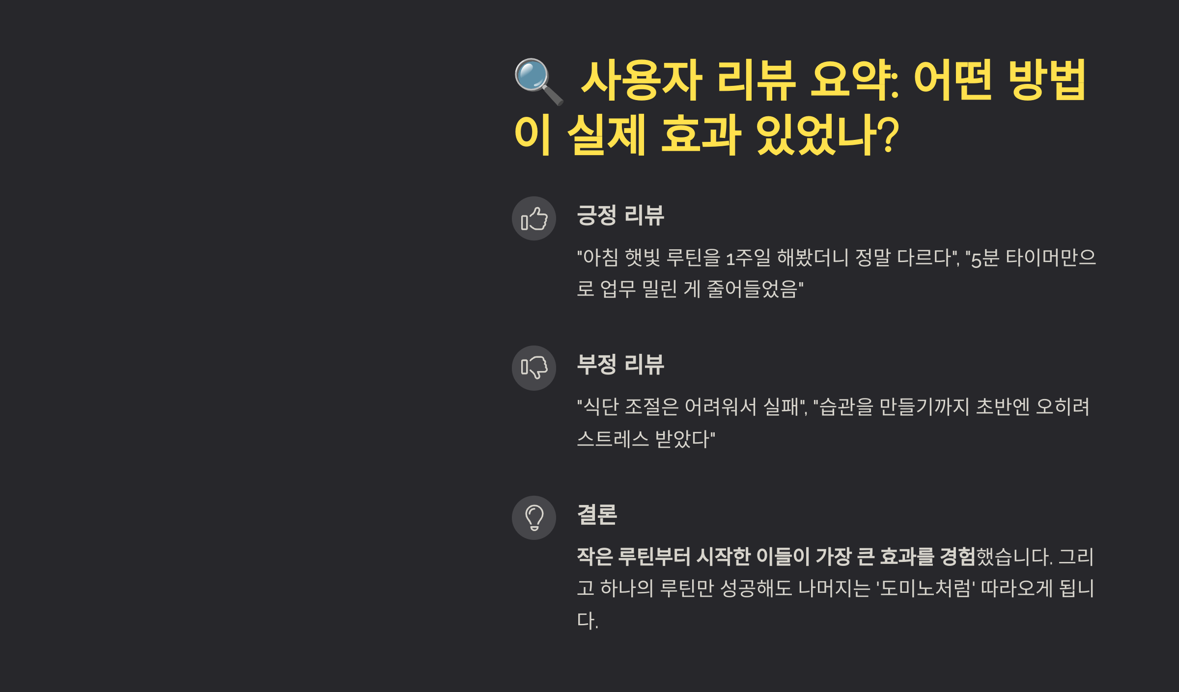 🔍 사용자 리뷰 요약: 어떤 방법이 실제 효과 있었나?