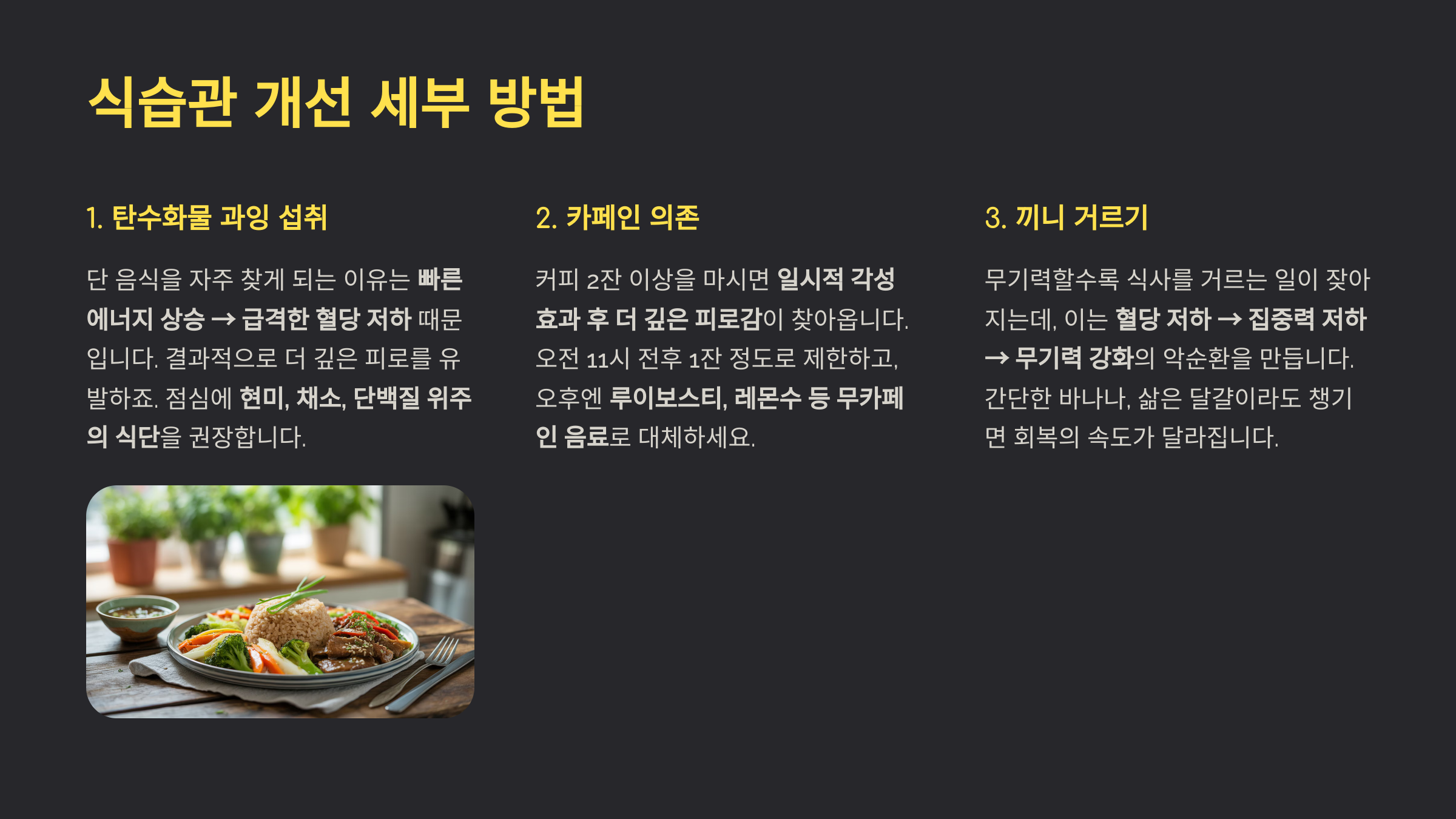 🥗 2단계: 무기력을 부추기는 식습관 3가지 점검
