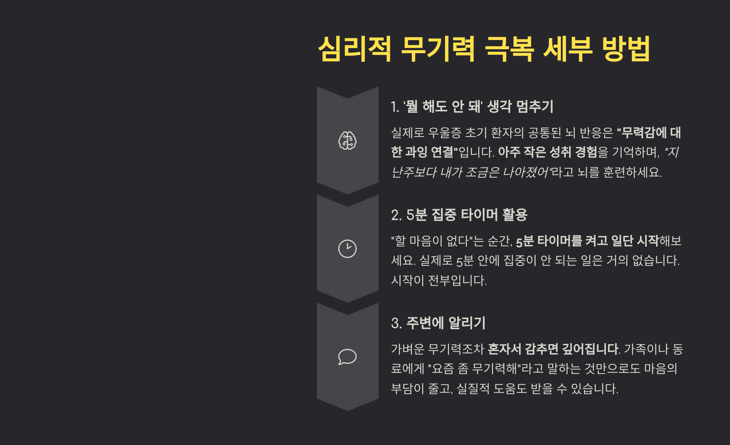 🧠 3단계: 심리적 무기력 끊어내는 뇌 습관 3가지