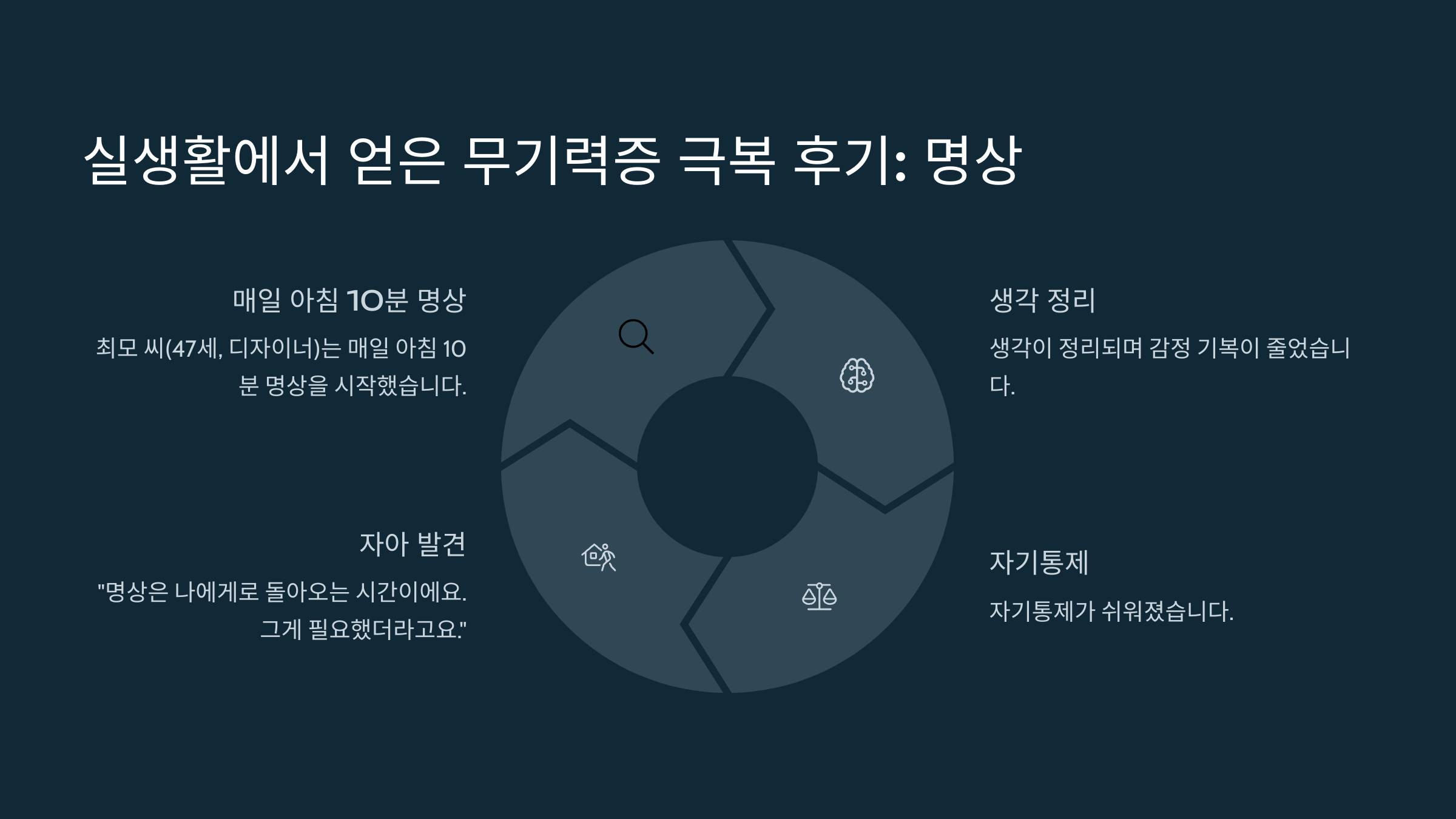 무기력증은 극복한 이들의 생생한 후기에서 힌트를 얻을 수 있습니다. 당신의 변화도 지금 이 순간, 작은 실천에서 시작됩니다.