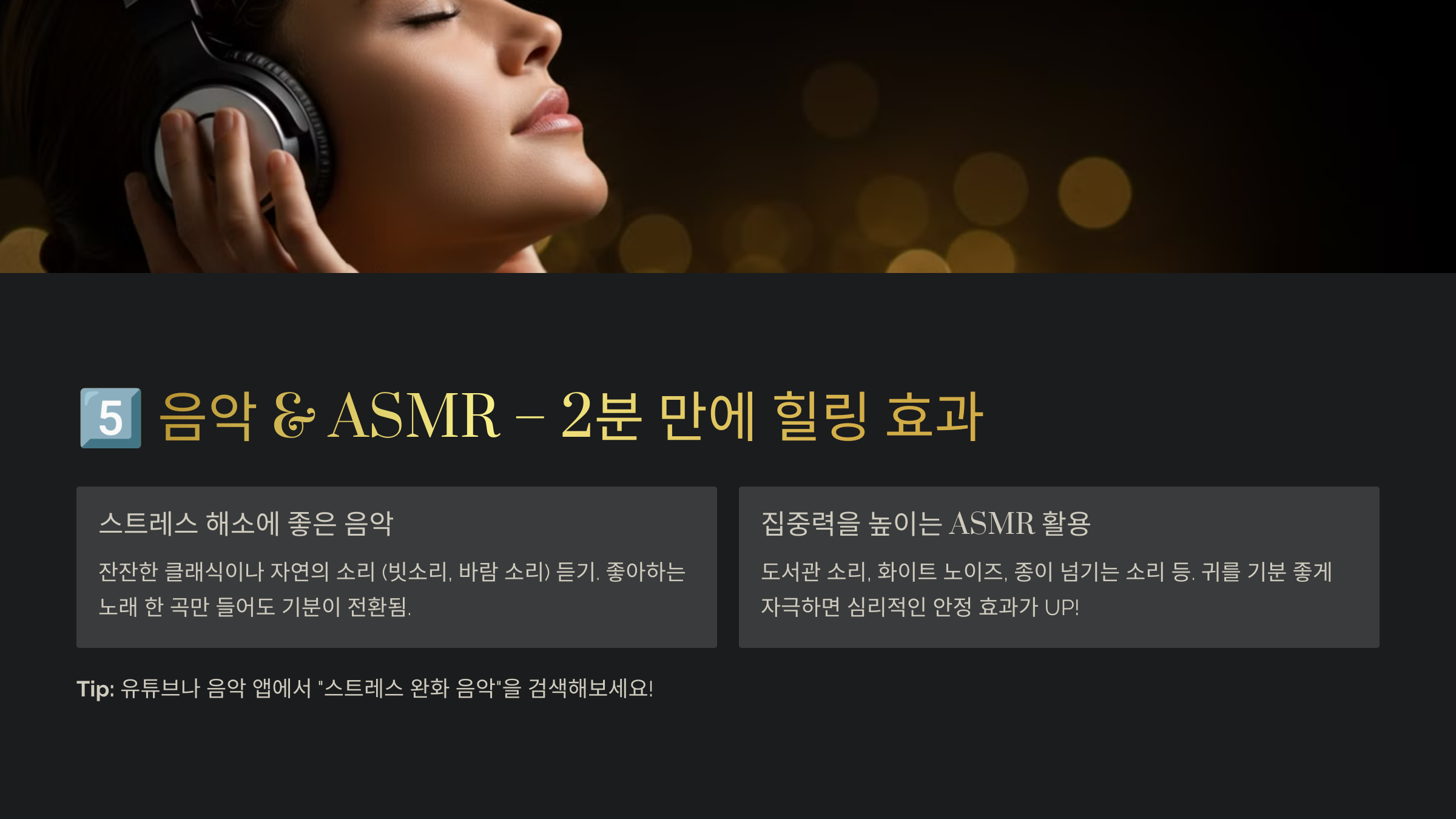 5️⃣ 음악 & ASMR – 2분 만에 힐링 효과