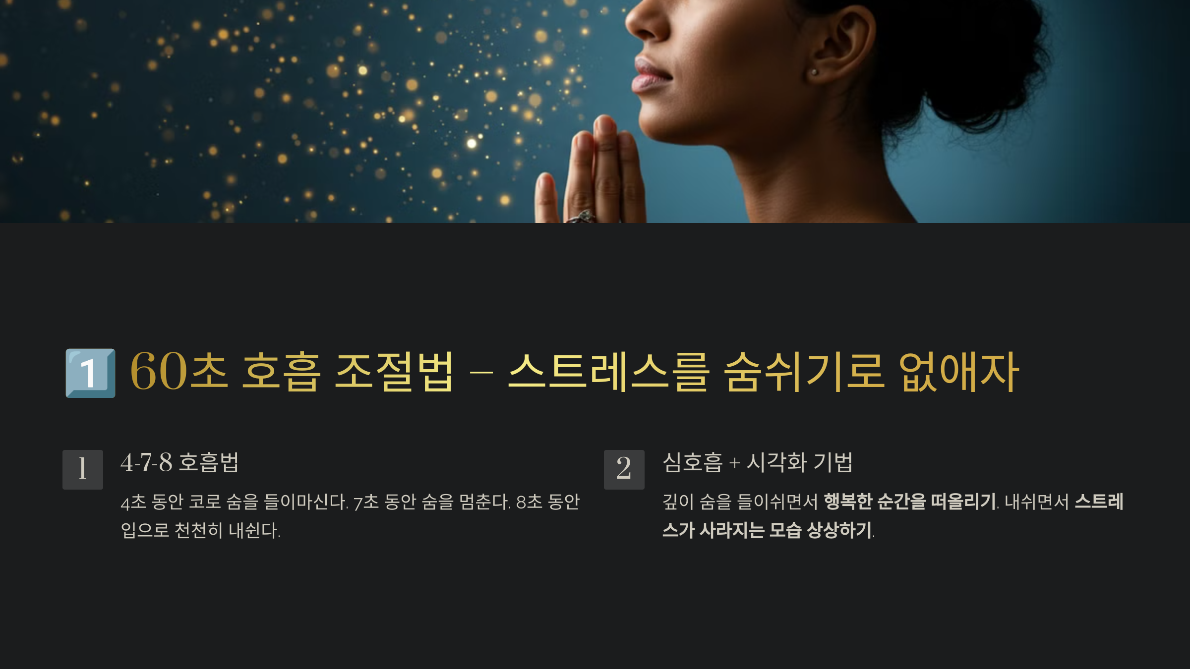 1️⃣ 60초 호흡 조절법 – 스트레스를 숨쉬기로 없애자