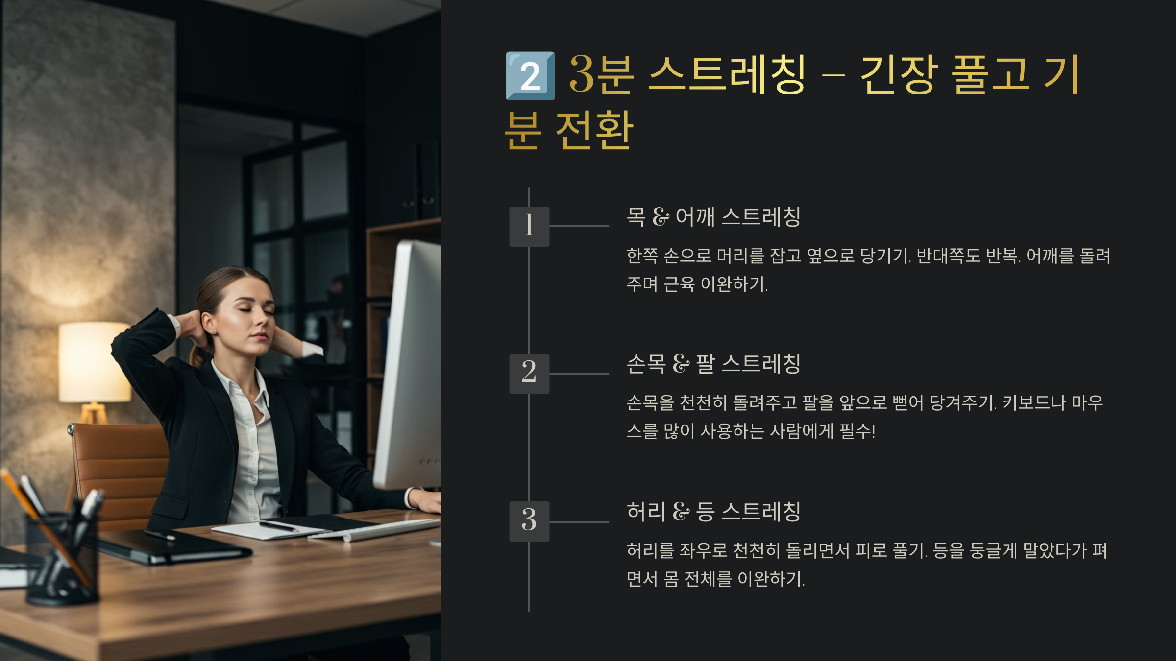 2️⃣ 3분 스트레칭 – 긴장 풀고 기분 전환