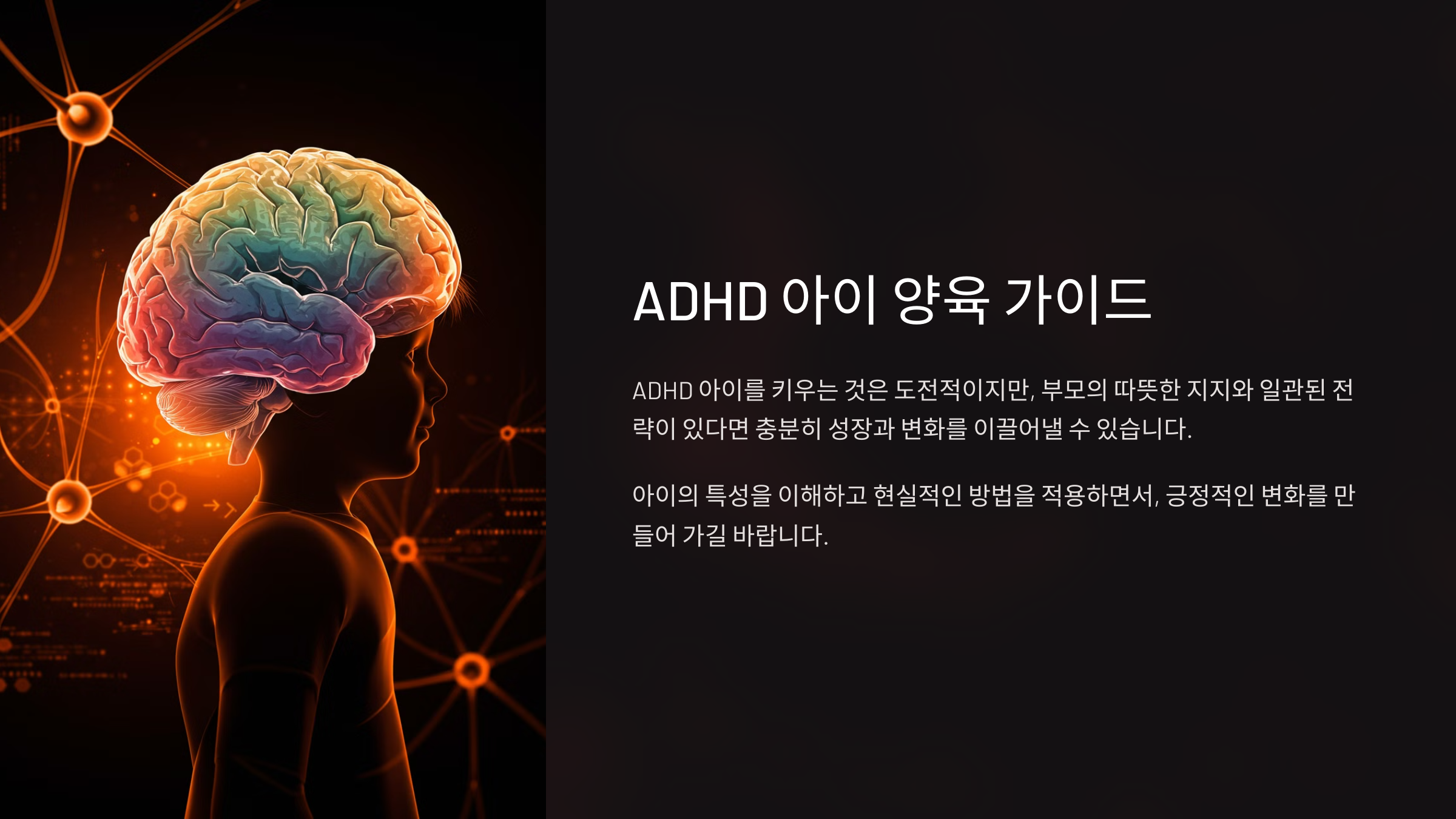 ADHD(주의력 결핍 및 과잉 행동 장애)를 가진 아이를 키우는 것은 쉽지 않은 일입니다. 하지만 올바른 접근 방식과 실천적인 전략을 활용하면 부모와 아이 모두가 더 나은 일상을 만들어 갈 수 있습니다. 이 가이드는 ADHD 아이를 키우는 부모님들이 실생활에서 적용할 수 있는 실전 팁을 제공합니다.