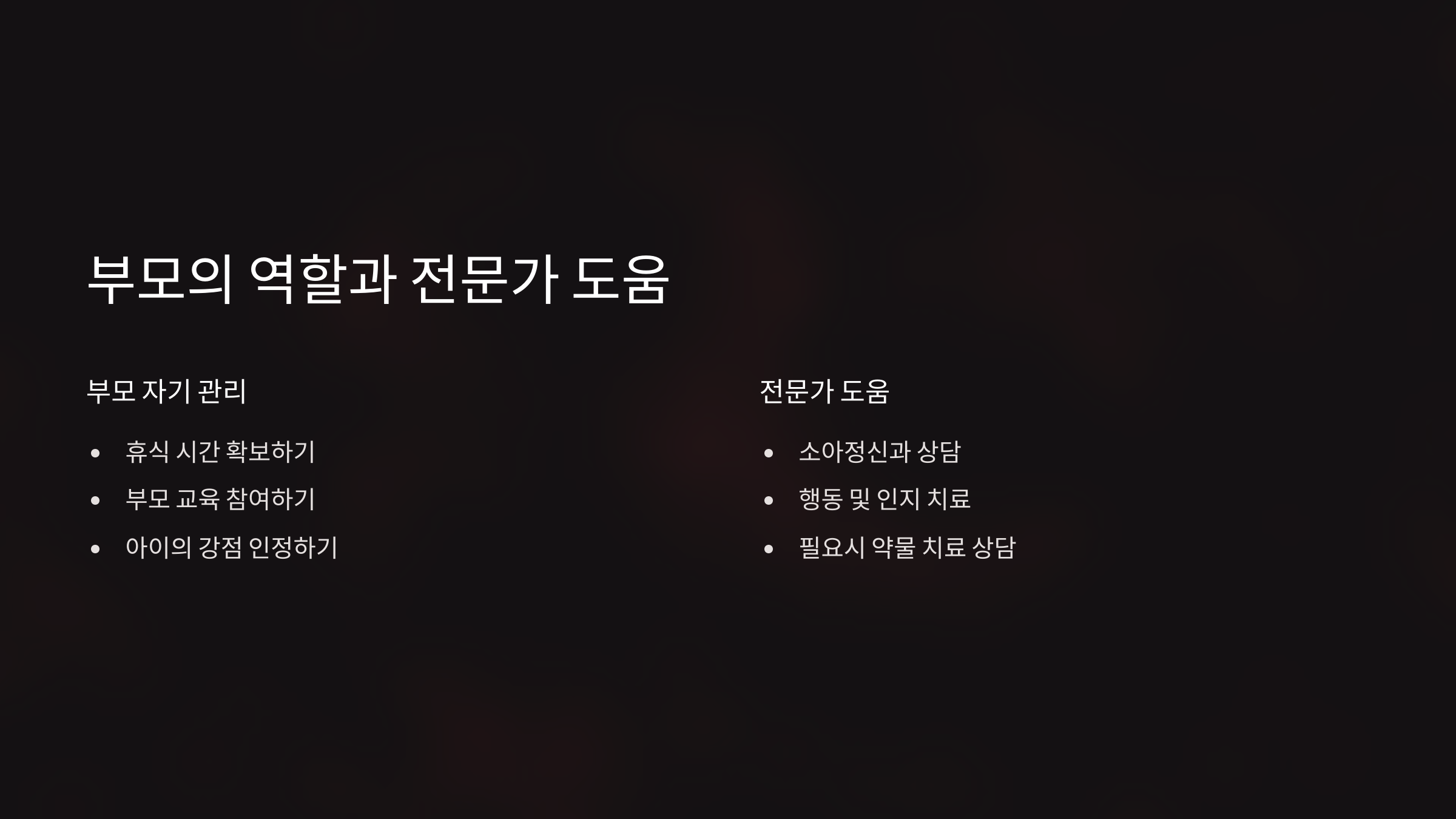 - ADHD 관련 부모 교육 및 지원 그룹 참여하기