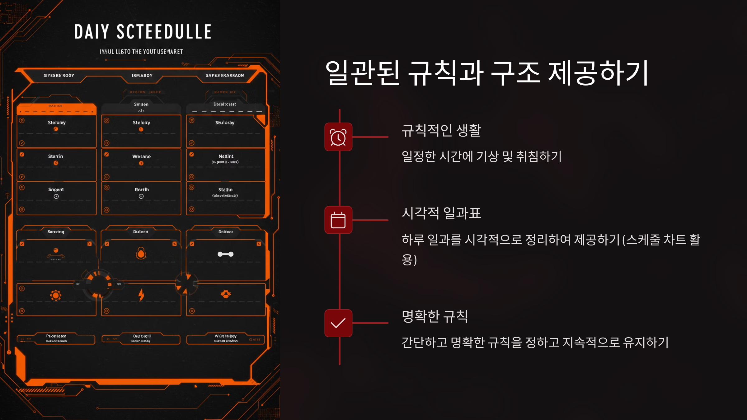 - 하루 일과를 시각적으로 정리하여 제공하기 (스케줄 차트 활용)