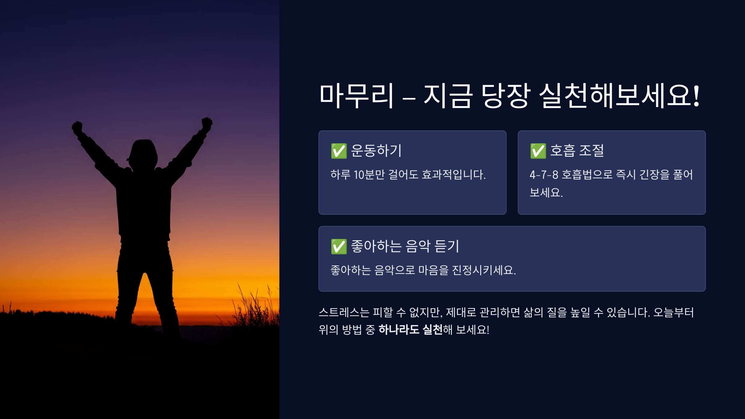 당신의 스트레스를 날려버릴 방법, 지금 시도해 볼까요? 🏃♂️✨