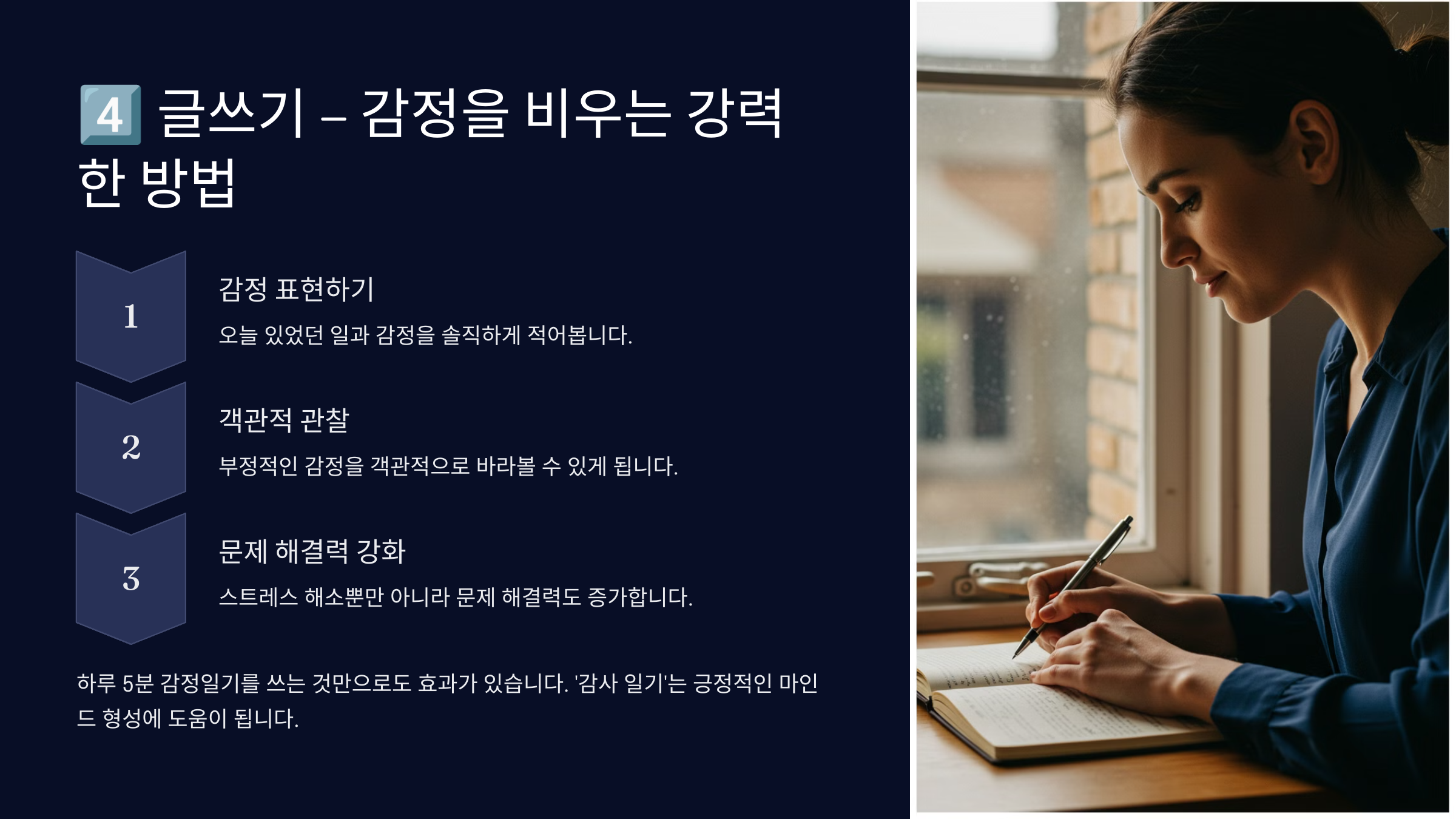 4️⃣ 글쓰기 – 감정을 비우는 강력한 방법 ✍