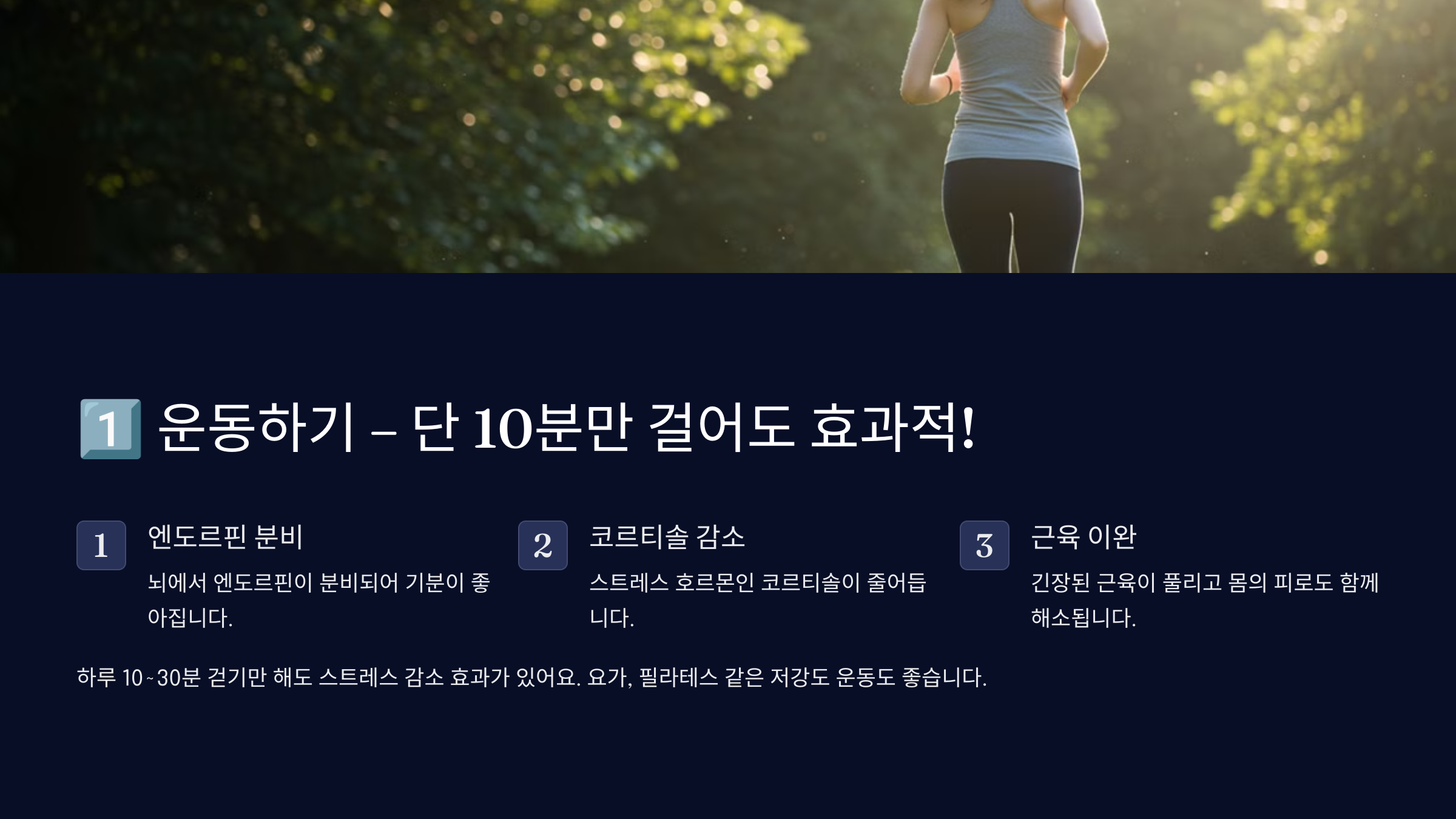 1️⃣ 운동하기 – 단 10분만 걸어도 효과적! 🏃♂️