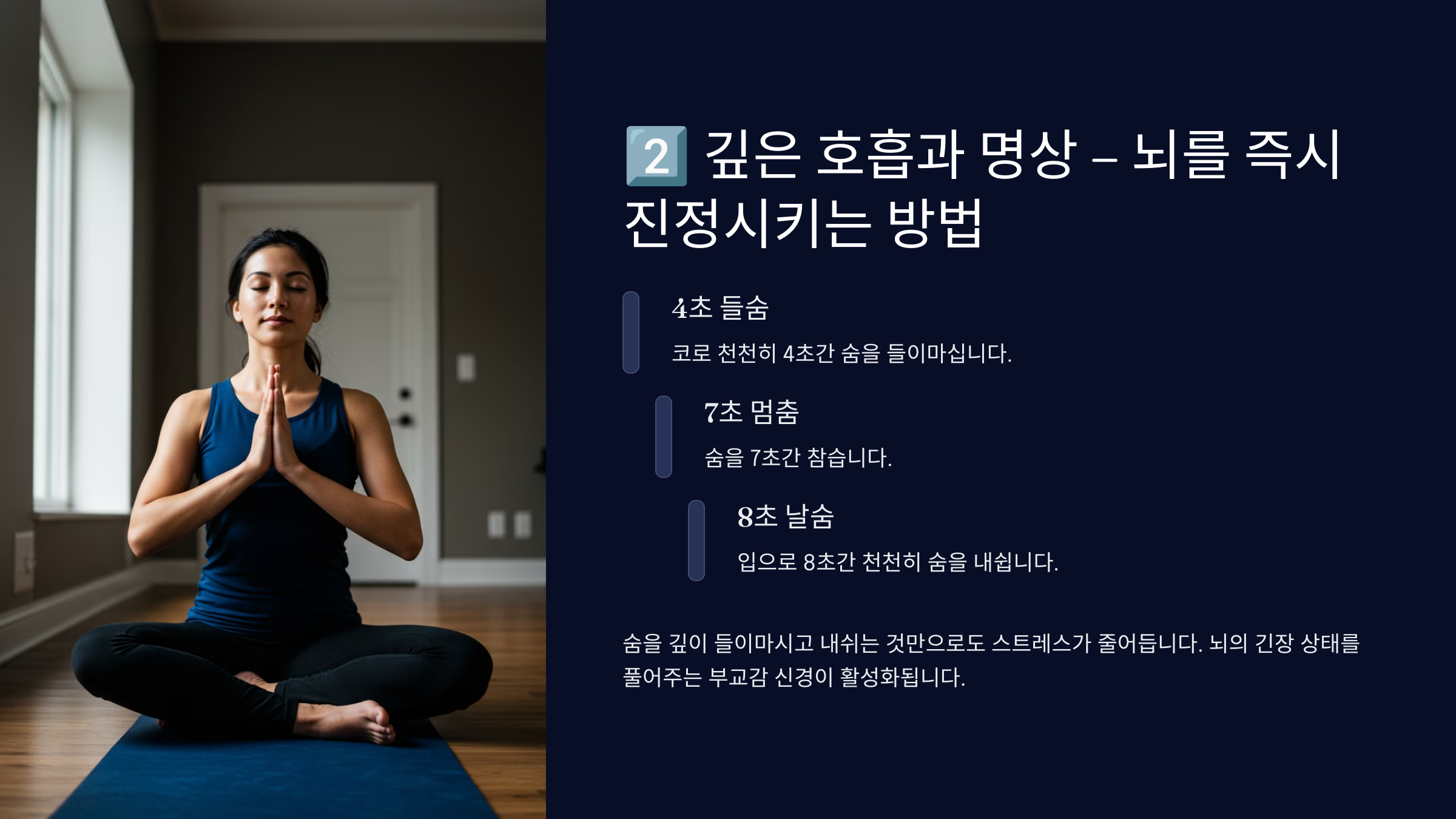 2️⃣ 깊은 호흡과 명상 – 뇌를 즉시 진정시키는 방법 🧘