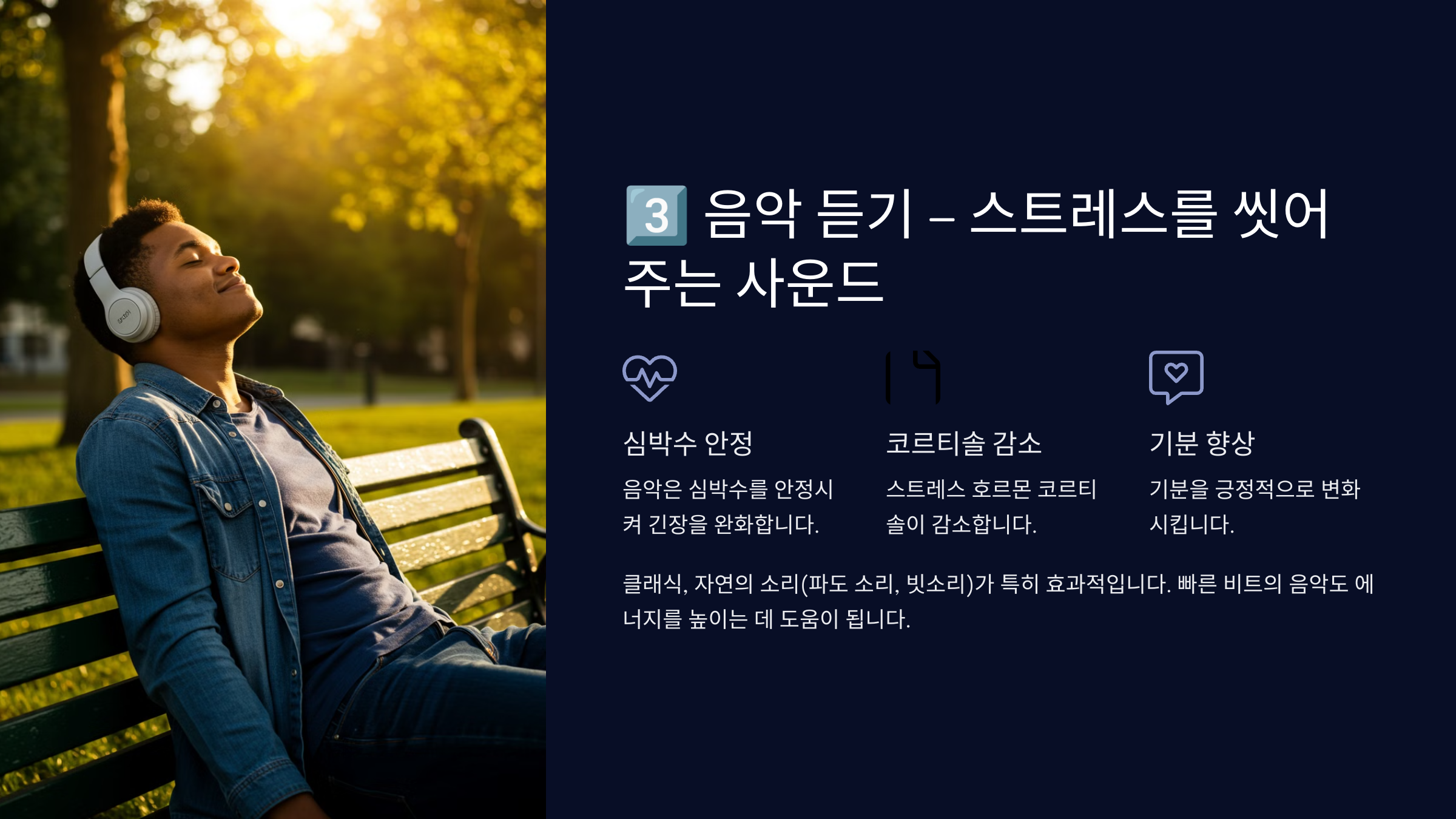 3️⃣ 음악 듣기 – 스트레스를 씻어주는 사운드 🎵