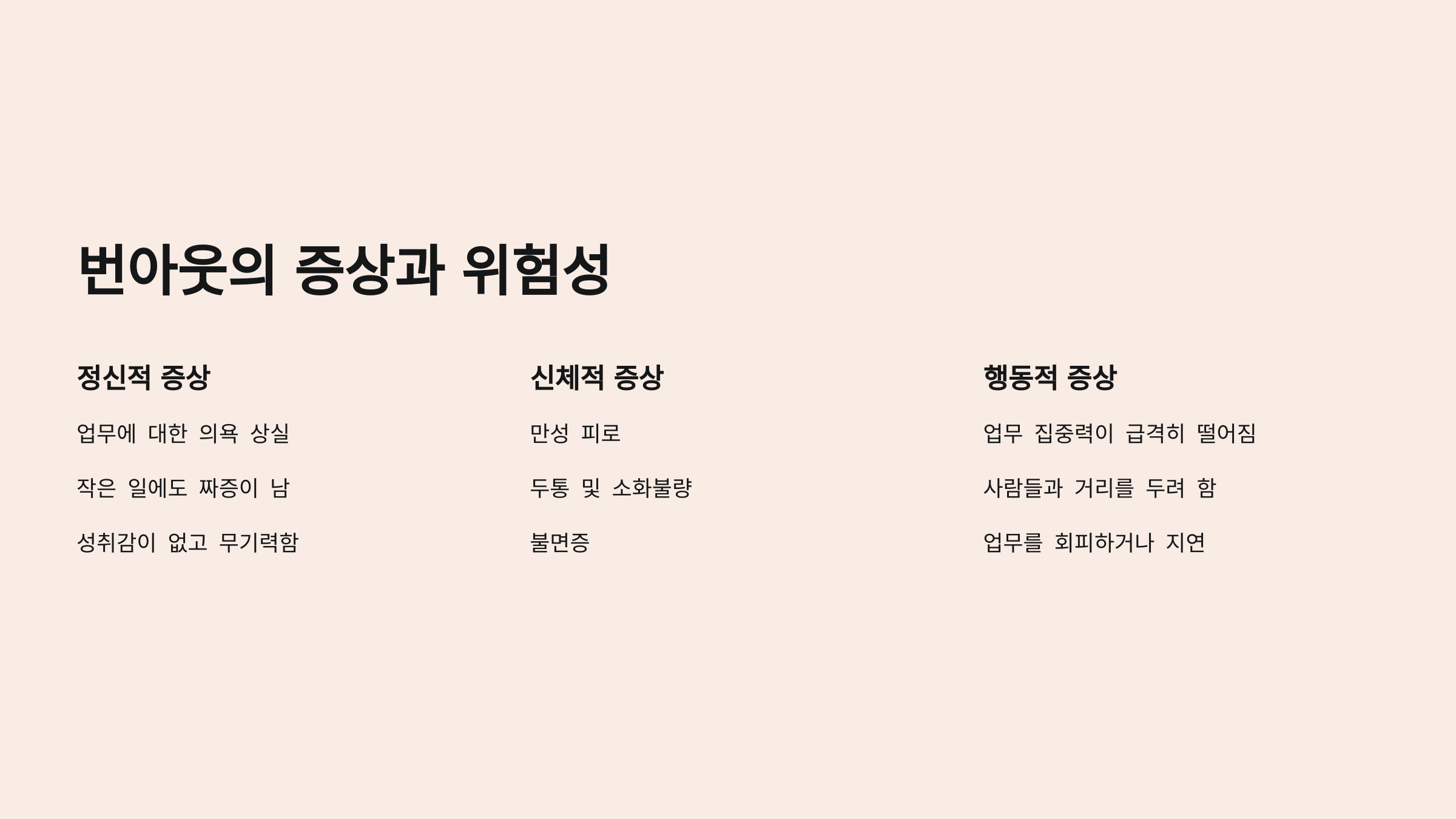 번아웃의 대표적인 증상을 알아볼까요?