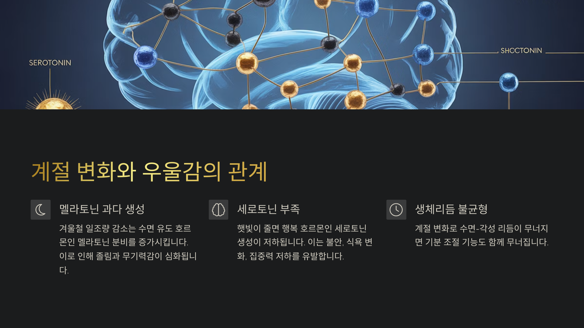 핵심 키워드: 계절성 우울증, SAD, 겨울 우울증, 햇빛 부족, 생체리듬