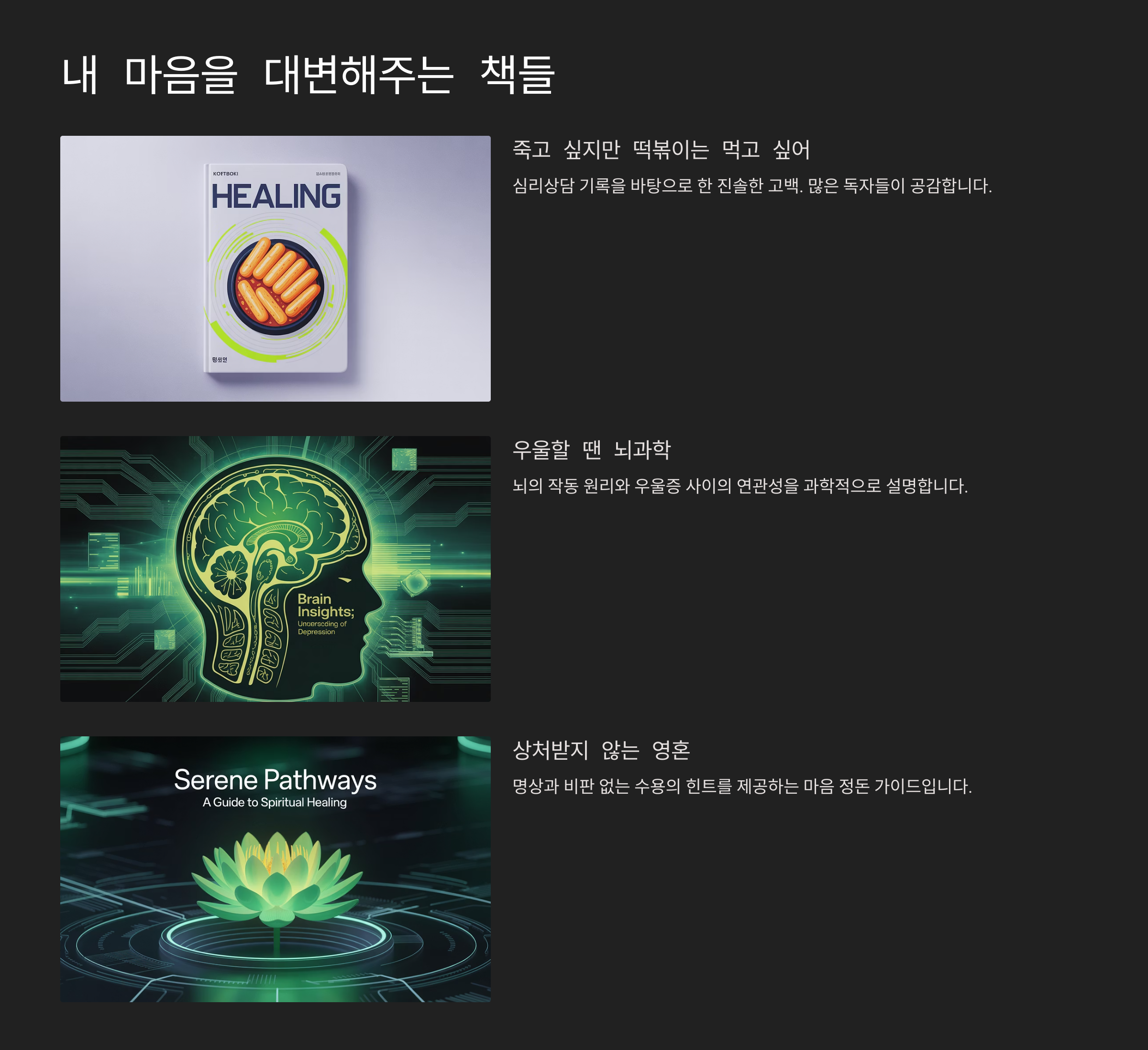 핵심 키워드: 우울증, 감정 공감, 영화 추천, 책 추천, 심리 치유