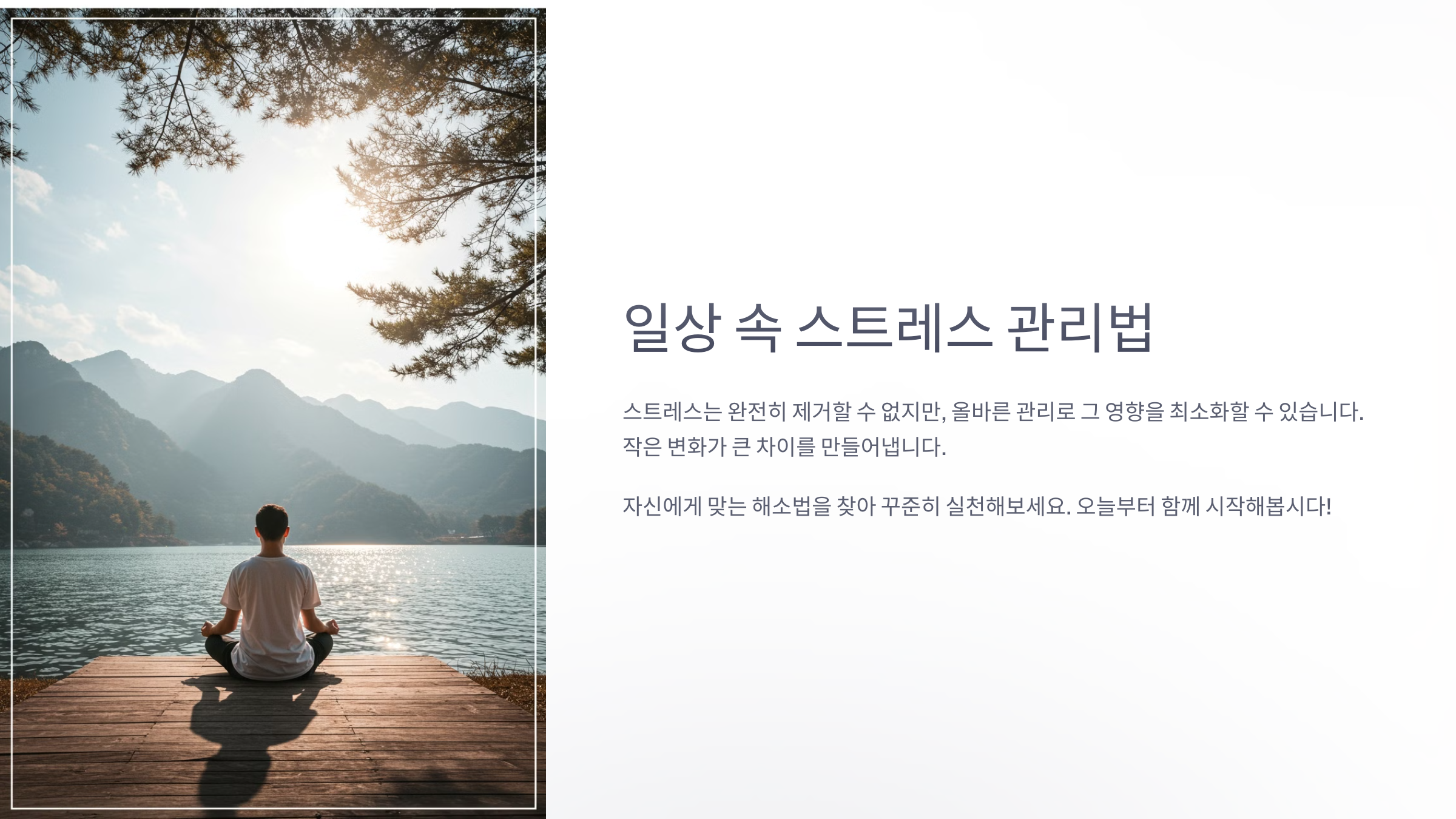 스트레스는 우리의 삶에서 완전히 제거할 수는 없지만, 올바른 관리 방법을 실천하면 그 영향을 최소화할 수 있습니다. 자신에게 맞는 스트레스 해소법을 찾아 꾸준히 실천하는 것이 중요합니다. 작은 변화가 큰 차이를 만들 수 있으므로, 오늘부터 하나씩 실천해 보세요!