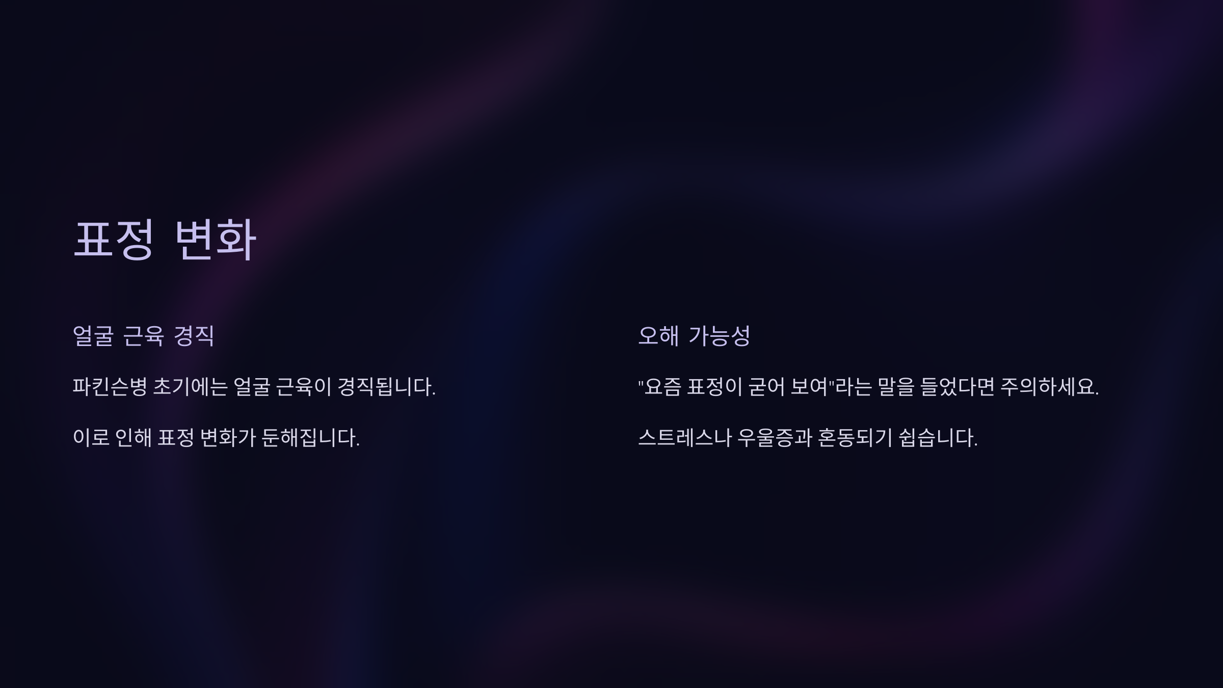 (3) 표정 변화: '무표정'으로 오해되는 얼굴 경직