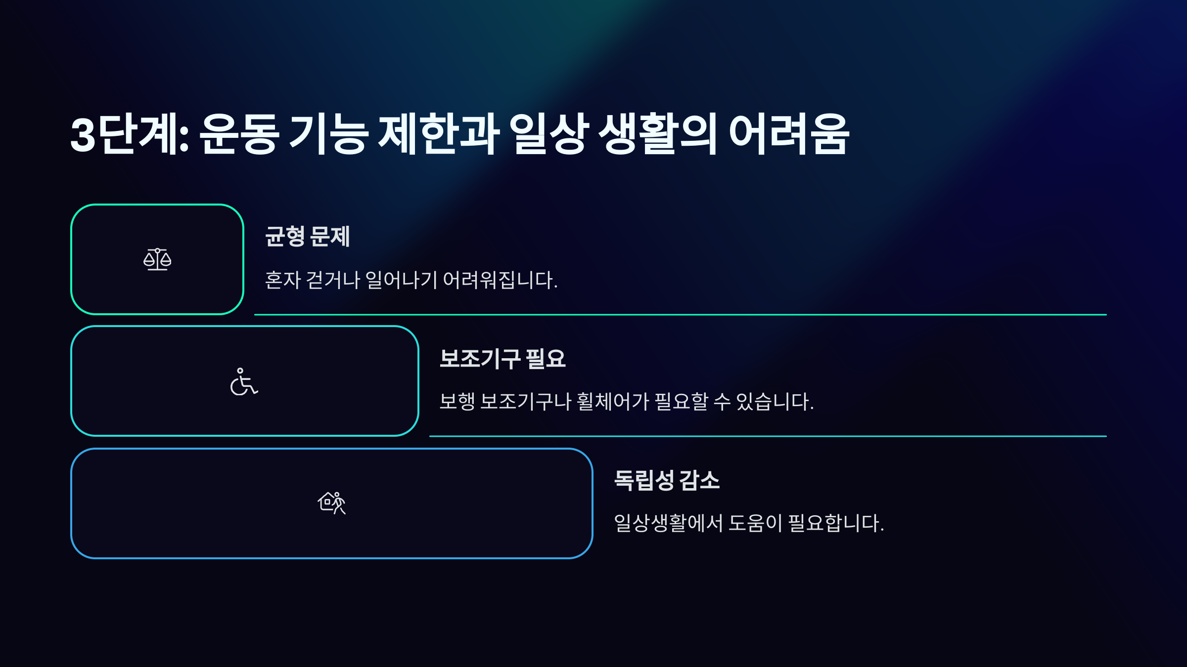 3단계: 운동 기능 제한과 일상생활의 어려움