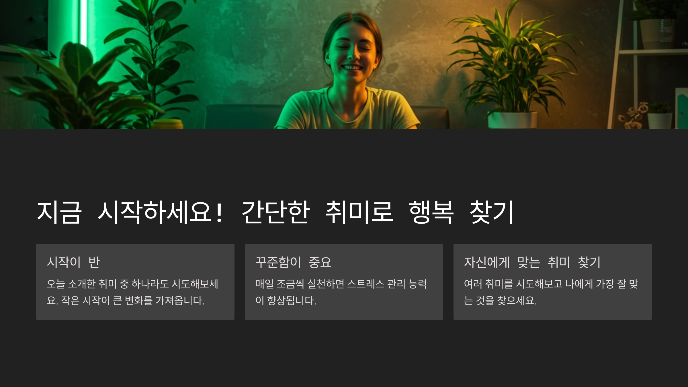 지금까지 소개해드린 취미 중 하나라도 시도해 보세요. 작은 변화가 큰 행복을 가져옵니다. "오늘 하루만, 나를 위한 시간을 가져보세요!" 지금이 마지막 기회일 수도 있습니다. 더 많은 정보가 궁금하다면 아래 링크를 클릭하세요!