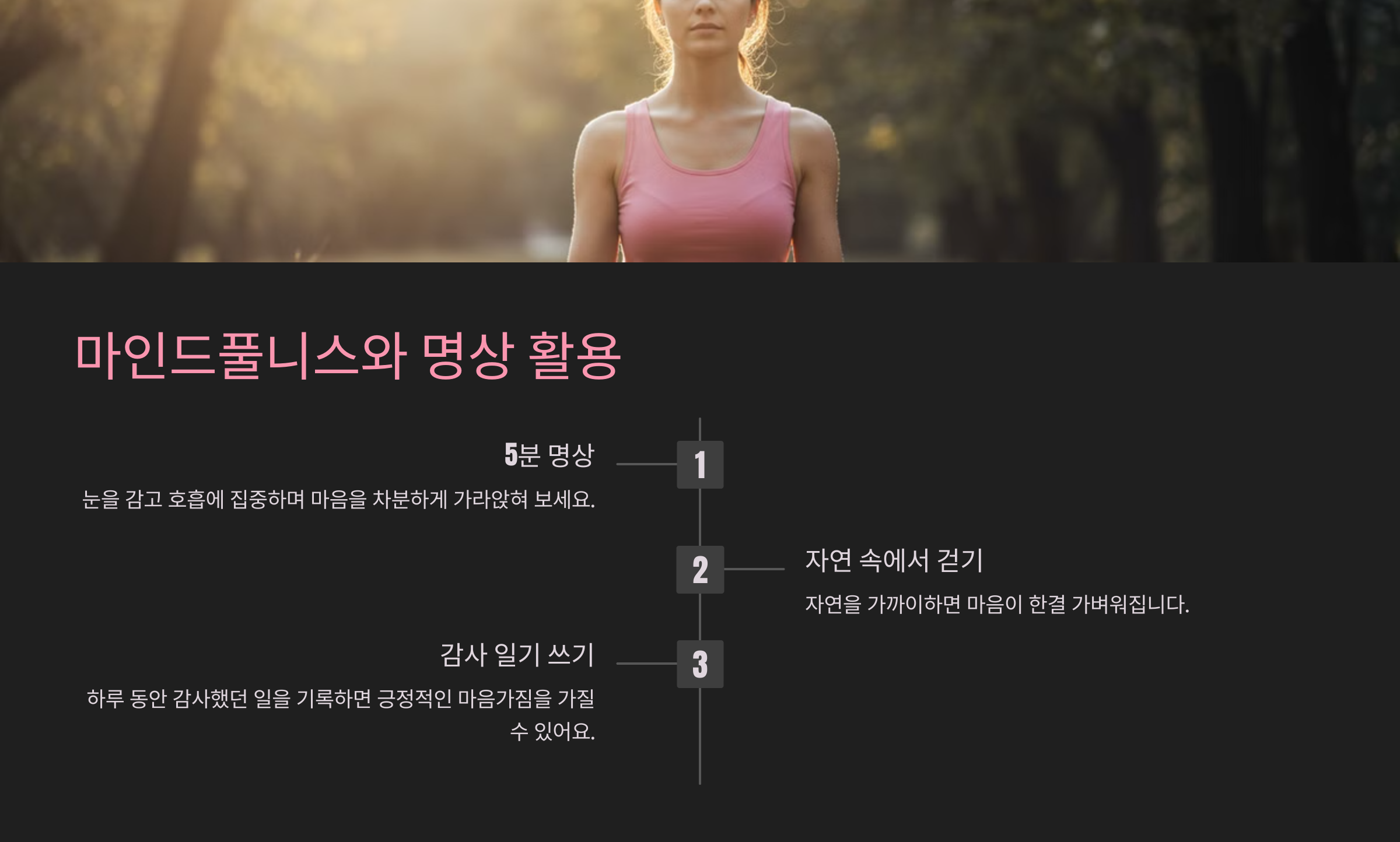 명상이나 깊은 호흡을 활용하면 정신적인 안정을 찾을 수 있어요.