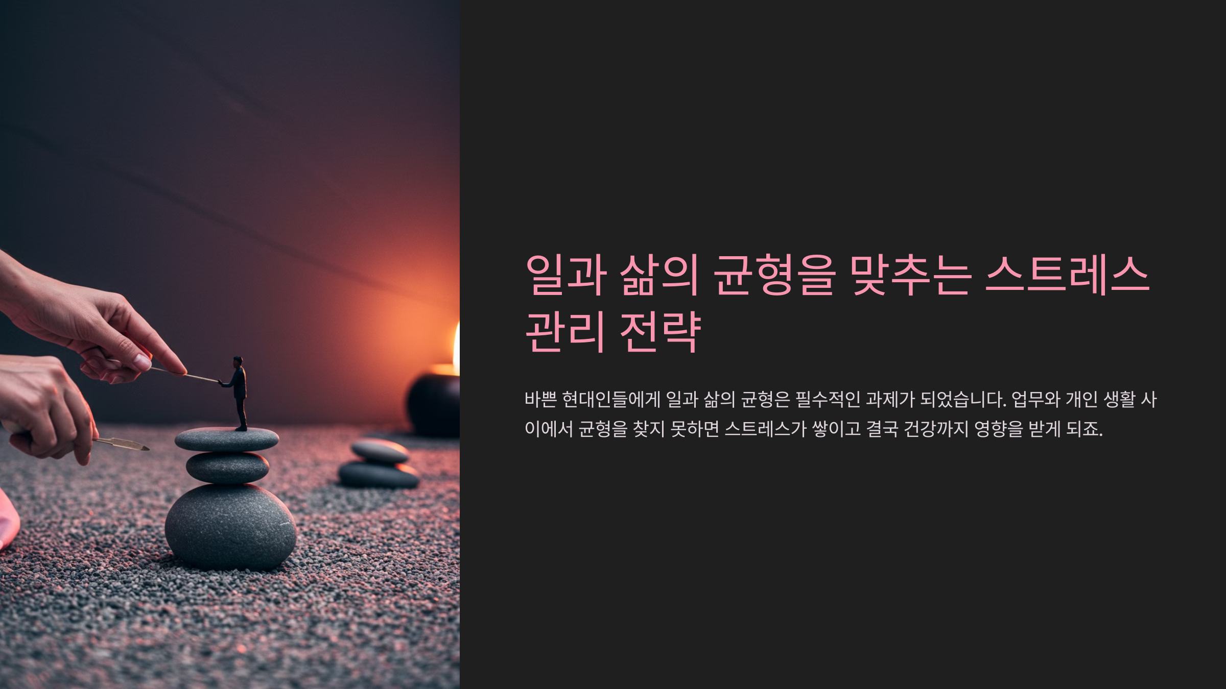 스트레스 관리와 일과 삶의 균형은 한 번에 해결되는 것이 아니라, 꾸준한 노력이 필요해요.