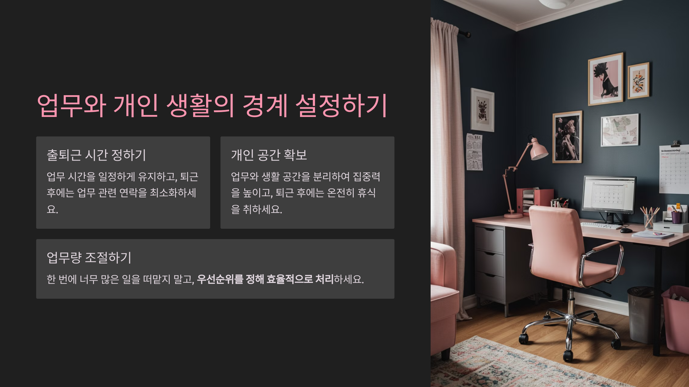 일과 삶의 균형을 맞추는 것은 단순한 이론이 아니라, 꾸준한 실천이 중요합니다.