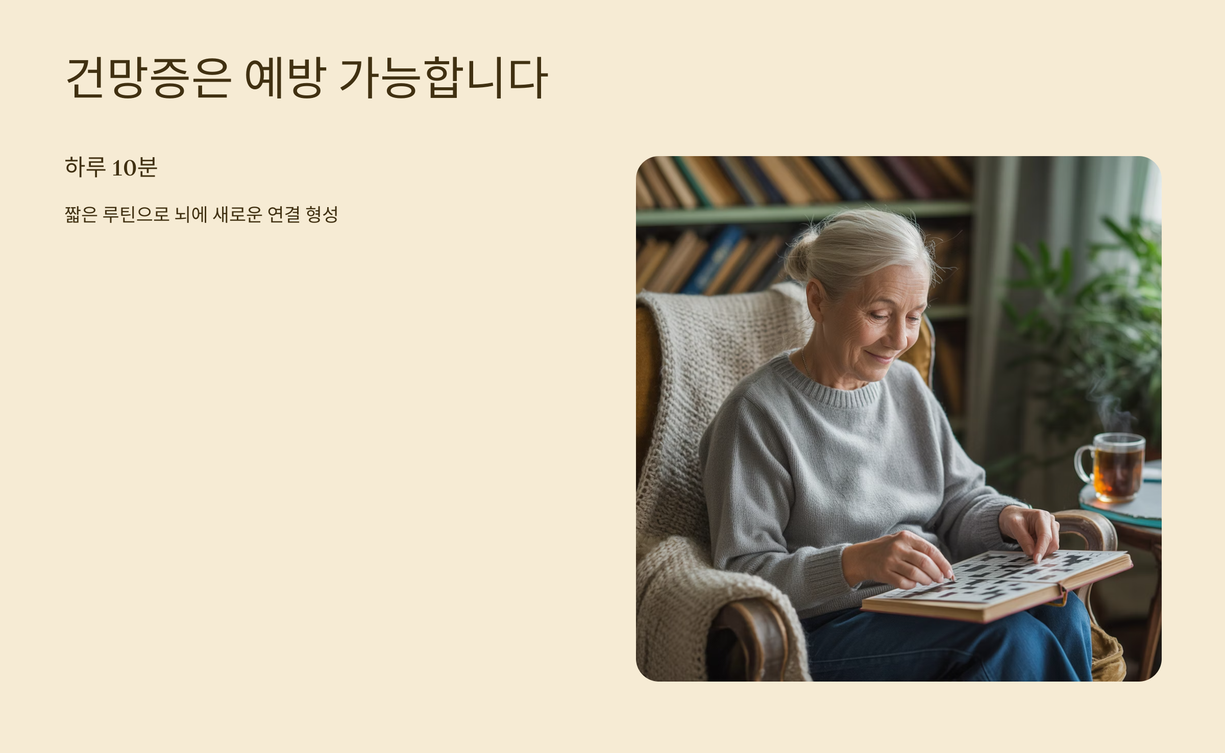 | 매일 10분 실천 | 계산+신체+기억력 균형 자극 | 기억력 유지, 깜빡임 감소 |
