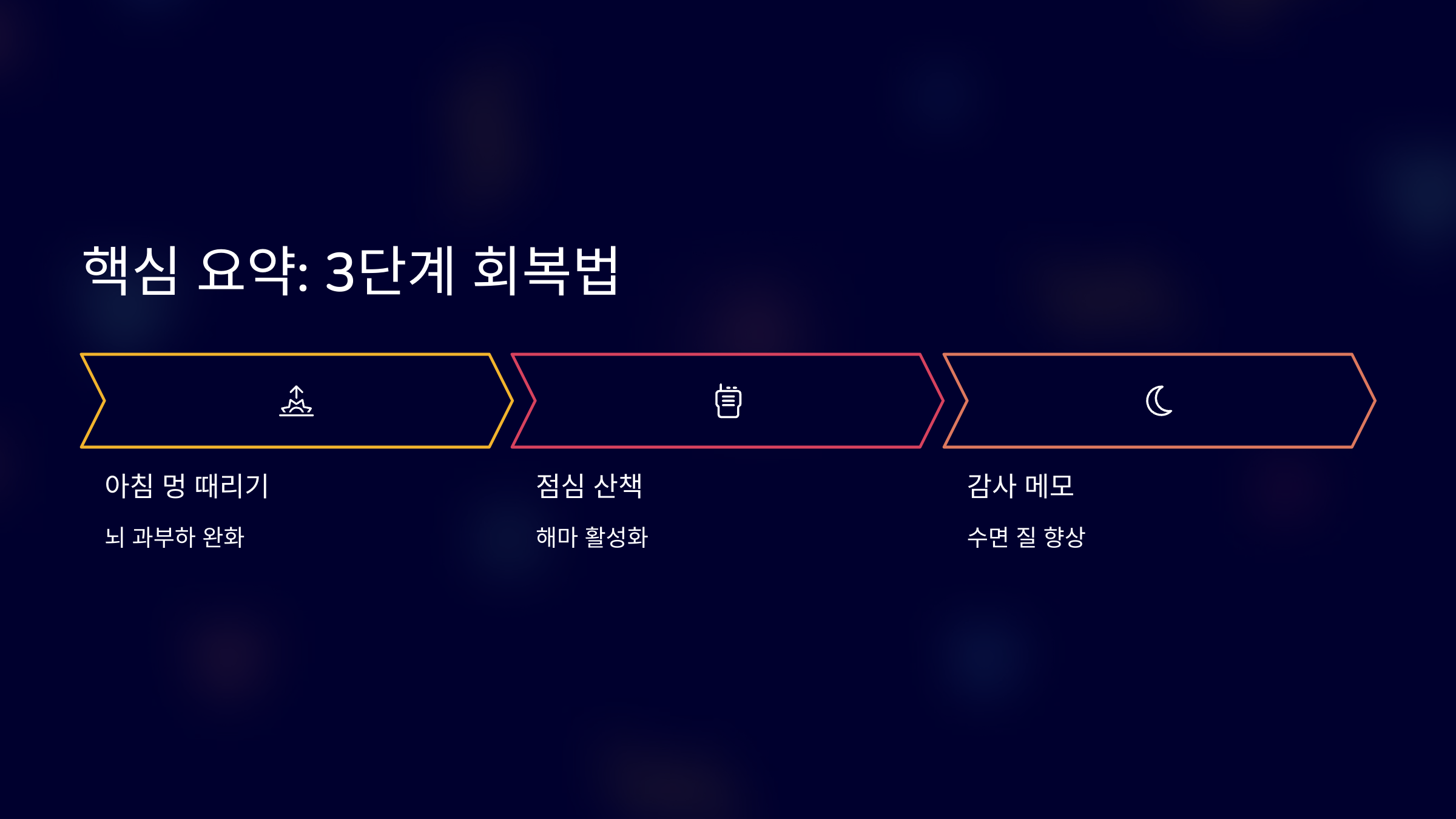“어? 내가 뭘 하려고 했지?” 이런 순간이 자꾸 늘어난다면, 단순한 피로가 아니라 **뇌 회복 신호**일 수 있습니다. 밤새 쌓인 정보와 스트레스를 제대로 정리하지 못하면 기억력 저하가 더 빨라집니다. 이번 글에서는 **누구나 쉽게 시작할 수 있는 두뇌 회복 루틴 3단계**와 바로 실천 가능한 체크리스트를 준비했습니다.