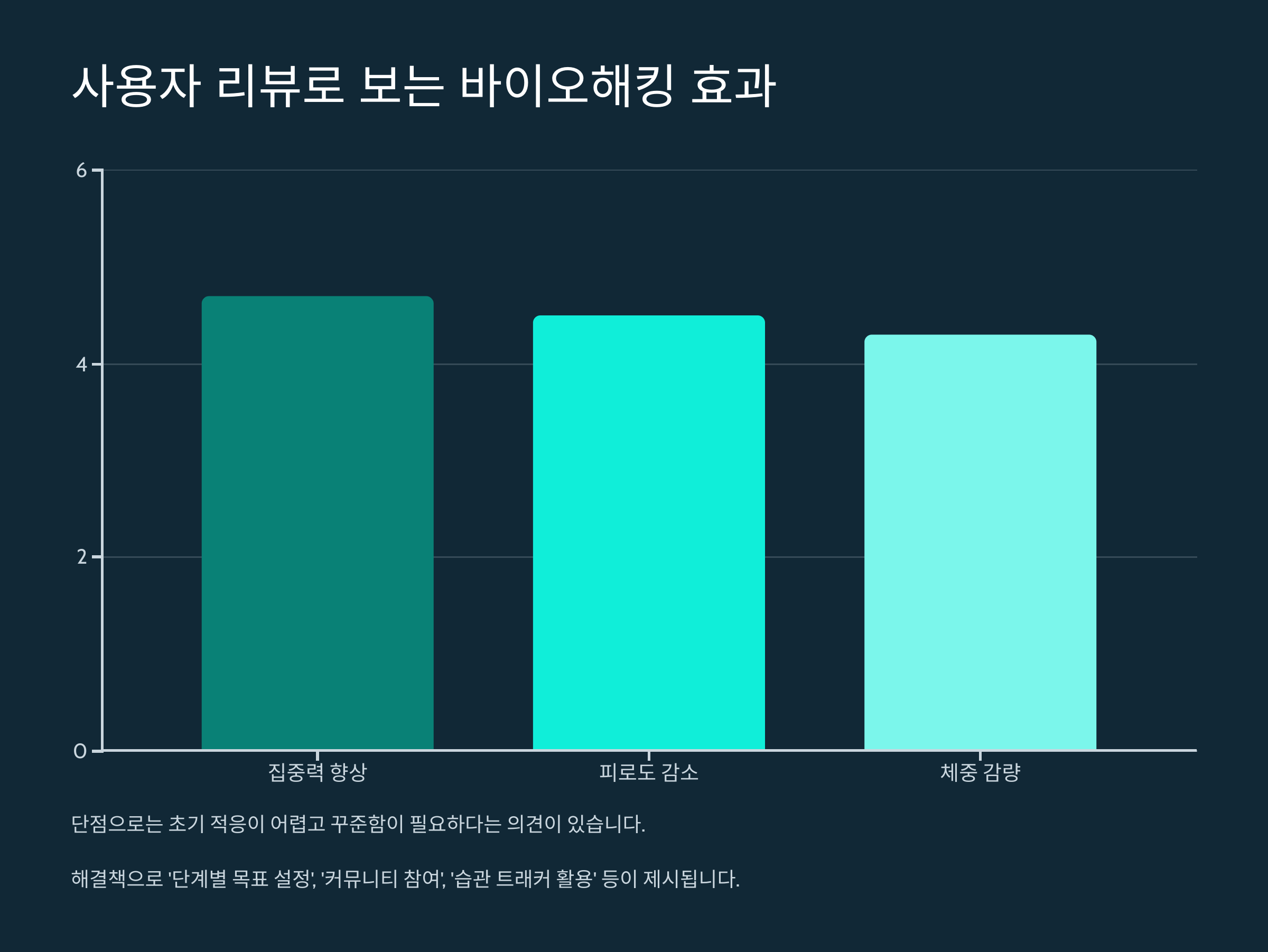 리뷰 요약 분석에 따르면, 장점: 집중력 향상(4.7/5), 피로도 감소(4.5/5), 체중 감량(4.3/5) 단점: 초기 적응이 어렵다, 꾸준함이 필요하다 → 이에 대한 해결책으로는 ‘단계별 목표 설정’, ‘커뮤니티 참여’, ‘습관 트래커 활용’ 등이 제시됩니다.
