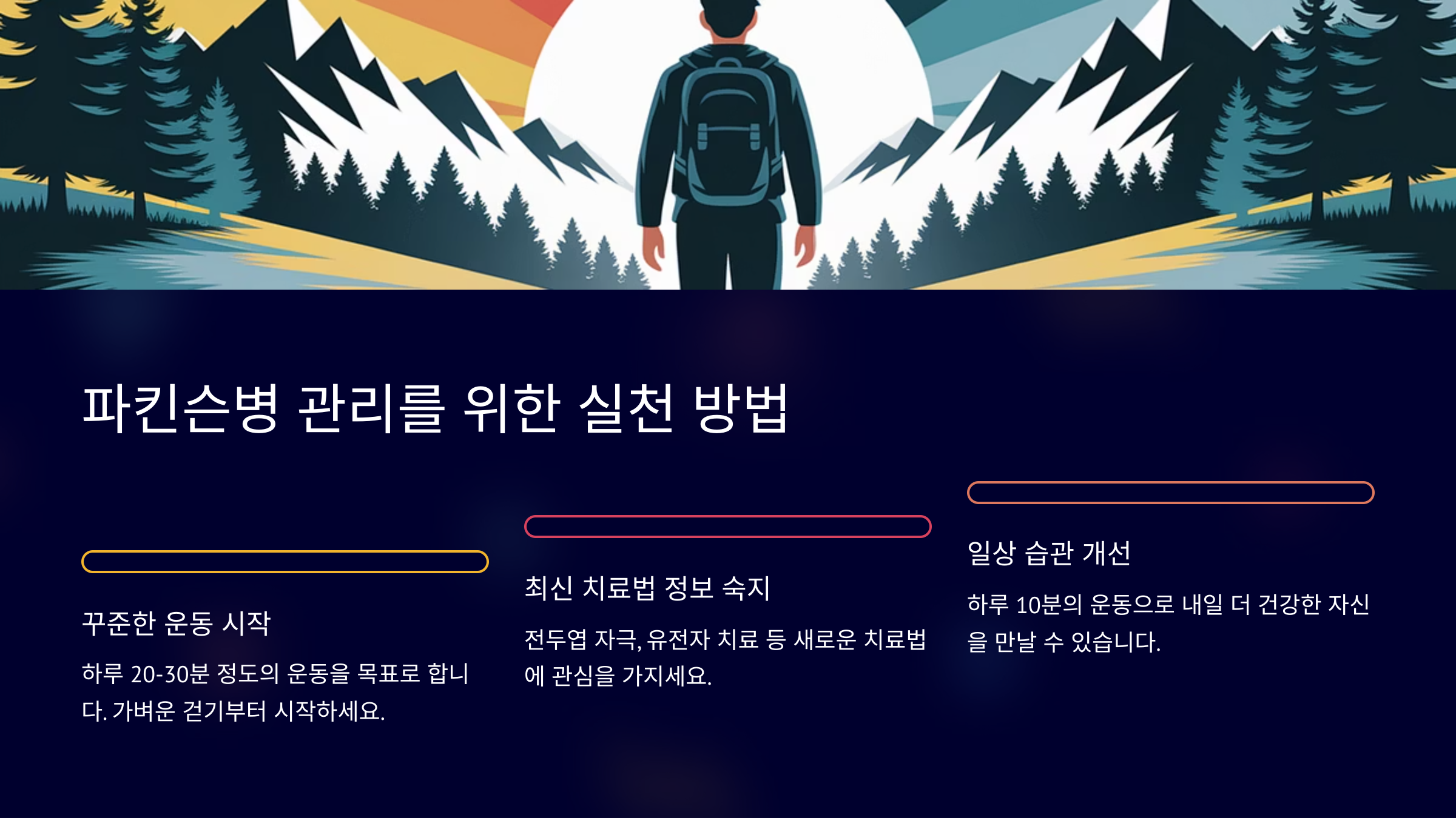 파킨슨병의 치료는 이제 약물에만 의존하는 시대가 아닙니다. 전두엽 자극, 유전자 치료, 운동 치료 등 다양한 비약물 치료법이 발전하고 있으며, 2025년에는 이러한 방법들이 더욱 효과적으로 환자들에게 적용될 것입니다. 40대 이상 직장인으로서, 파킨슨병에 대한 올바른 이해와 예방은 이제 선택이 아닌 필수입니다. 파킨슨병에 대비하는 방법은 복잡하지 않습니다. 지금부터라도 꾸준한 운동을 시작하고, 최신 치료법에 대한 정보를 숙지하여 건강을 관리하는 것이 중요합니다. 작은 실천이 미래의 건강을 지키는 첫걸음이 될 수 있습니다.