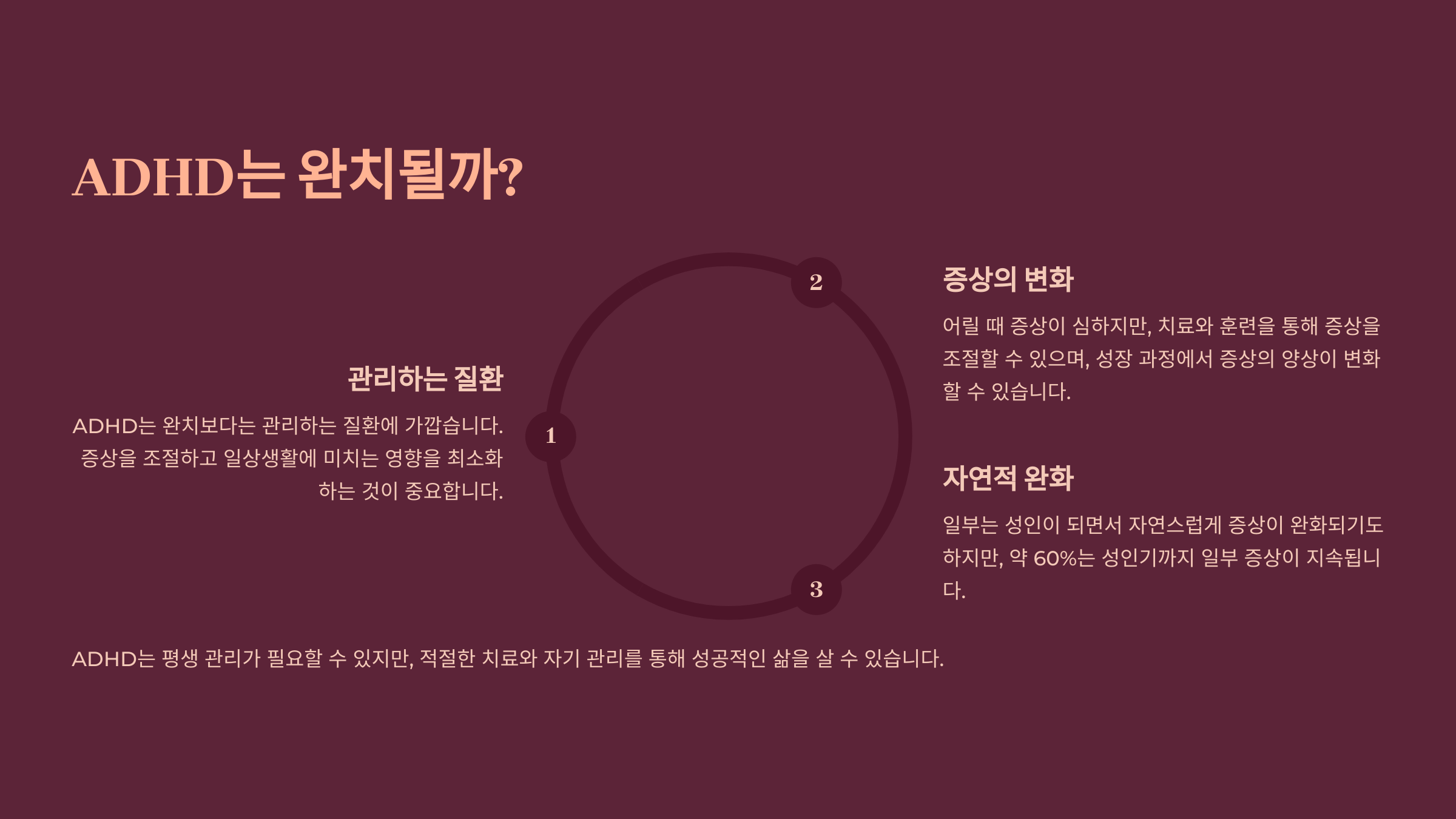ADHD는 완치보다는 관리하는 질환에 가깝습니다.
