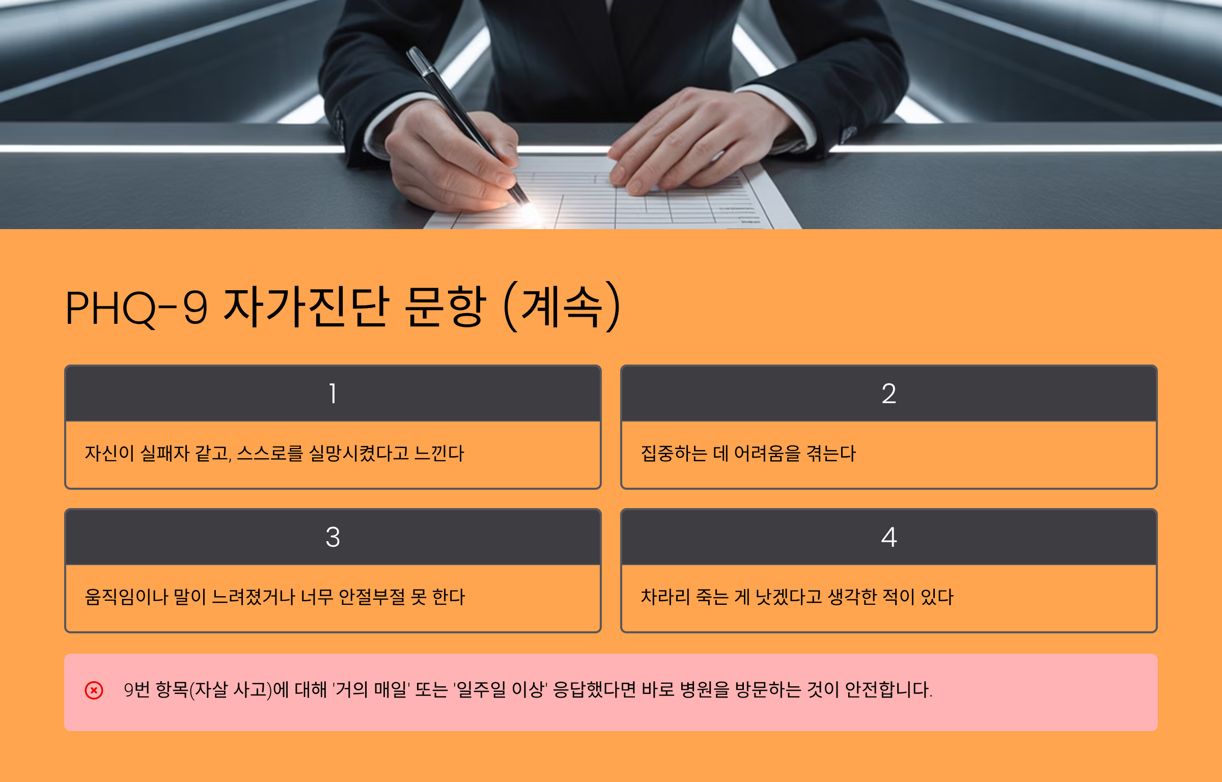 📋 3. PHQ-9 자가진단 문항과 직접 해보기